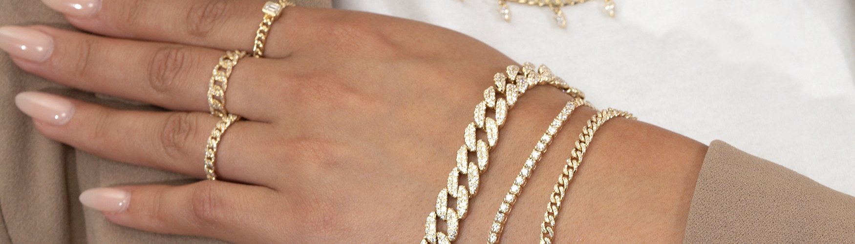 MaterialGold, Diamond DescriptionUp for sale is a beautiful 14K Gold Small Diamond Cuban Bracelet. Specifications:-Model #: DHODCUBDIAM-Metal Type: Tri Color, Rose, White, or Yellow Gold-Metal Purity: 14K-Total Diamond Weight: 1.70 carats approx.-Width: 6MM -Length: 7.50 Inches-Color: F-G-Clarity: SI Brief Overview:-Free Sizing...