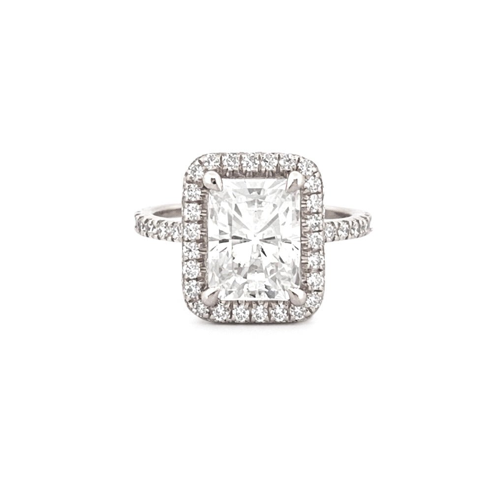 14K Gold 2.75 Carat Radiant Moissanite 3D Halo Prong Set Engagement Ring