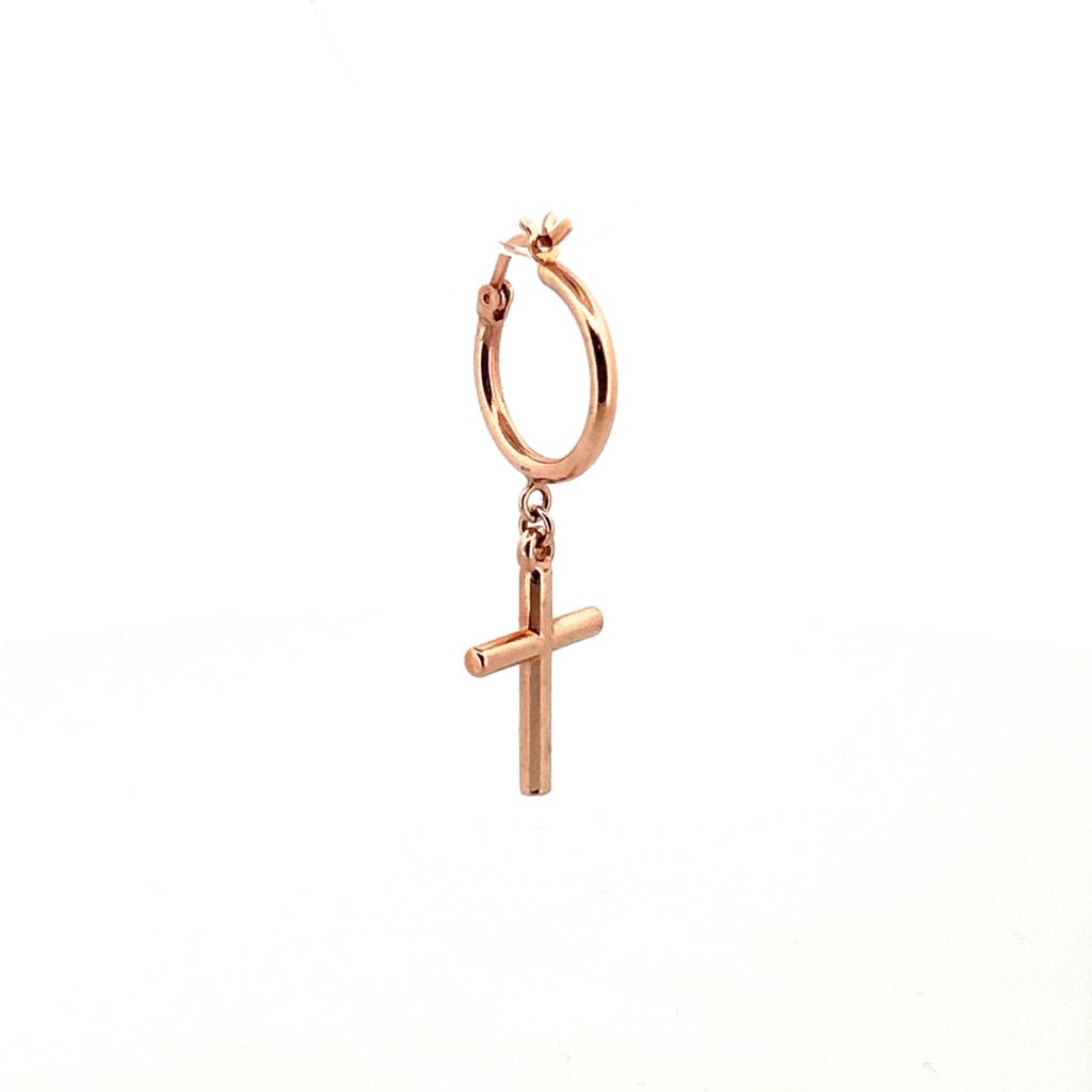 14K Gold Dangling Cross Hoop Earrings