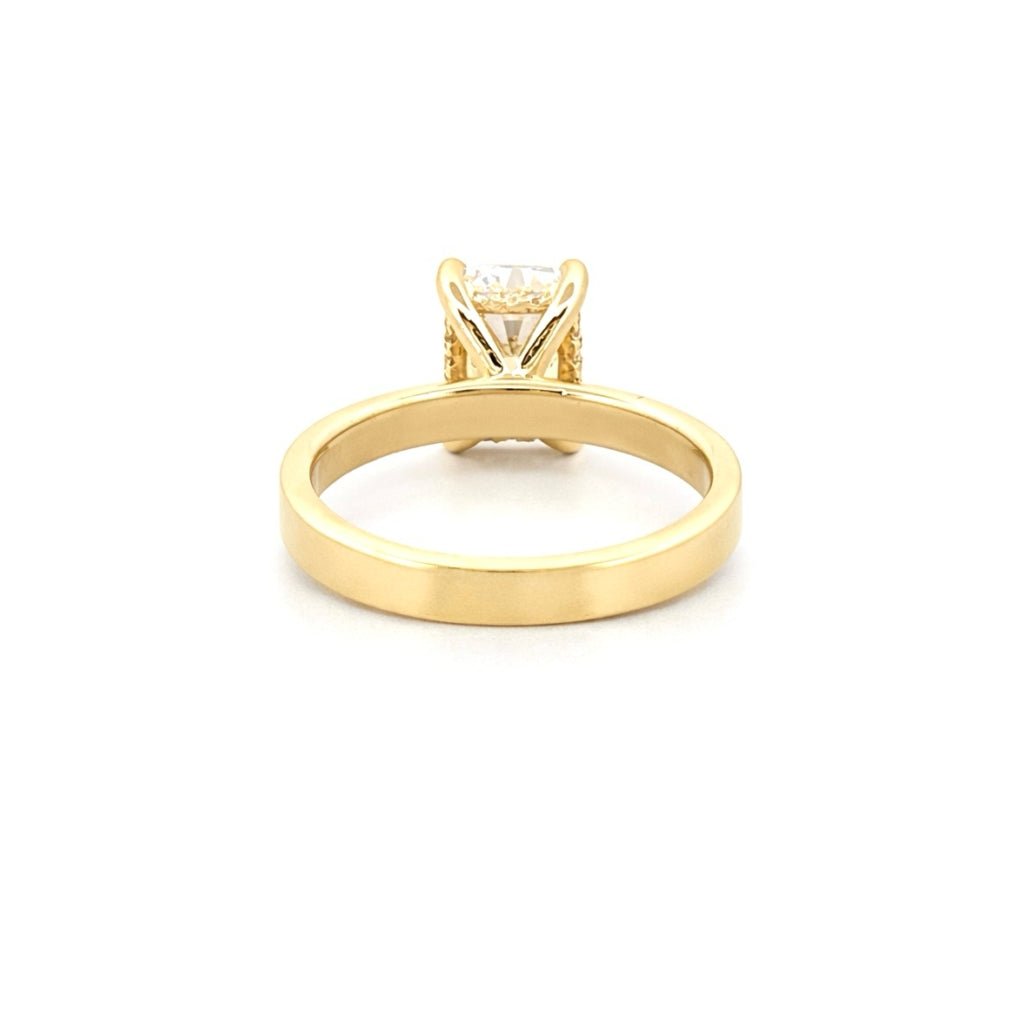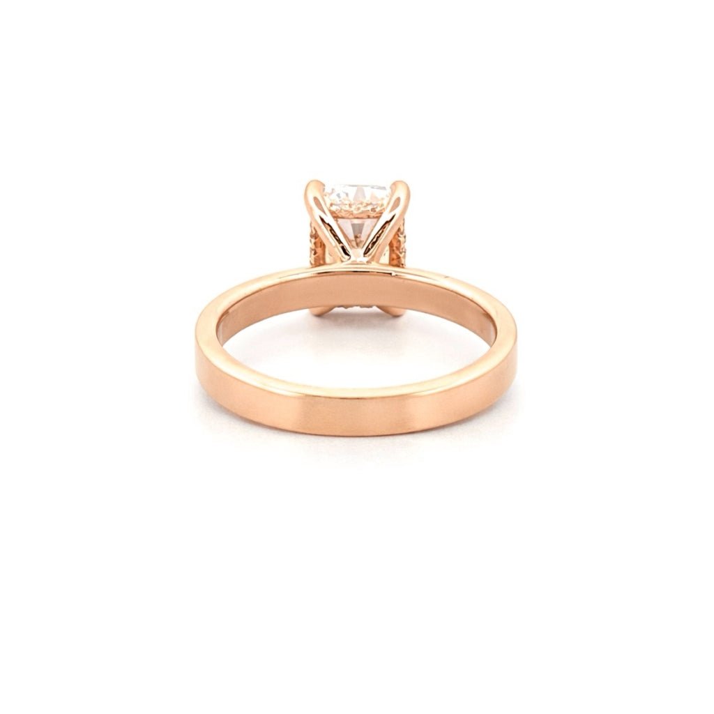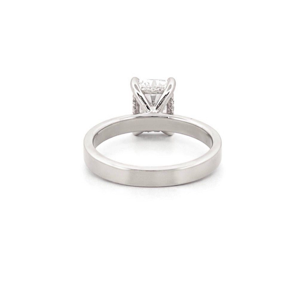 14K Gold Lab Grown 3.00 Carat Elongated Cushion Diamond Under Halo and 3MM Solitaire Engagement Ring