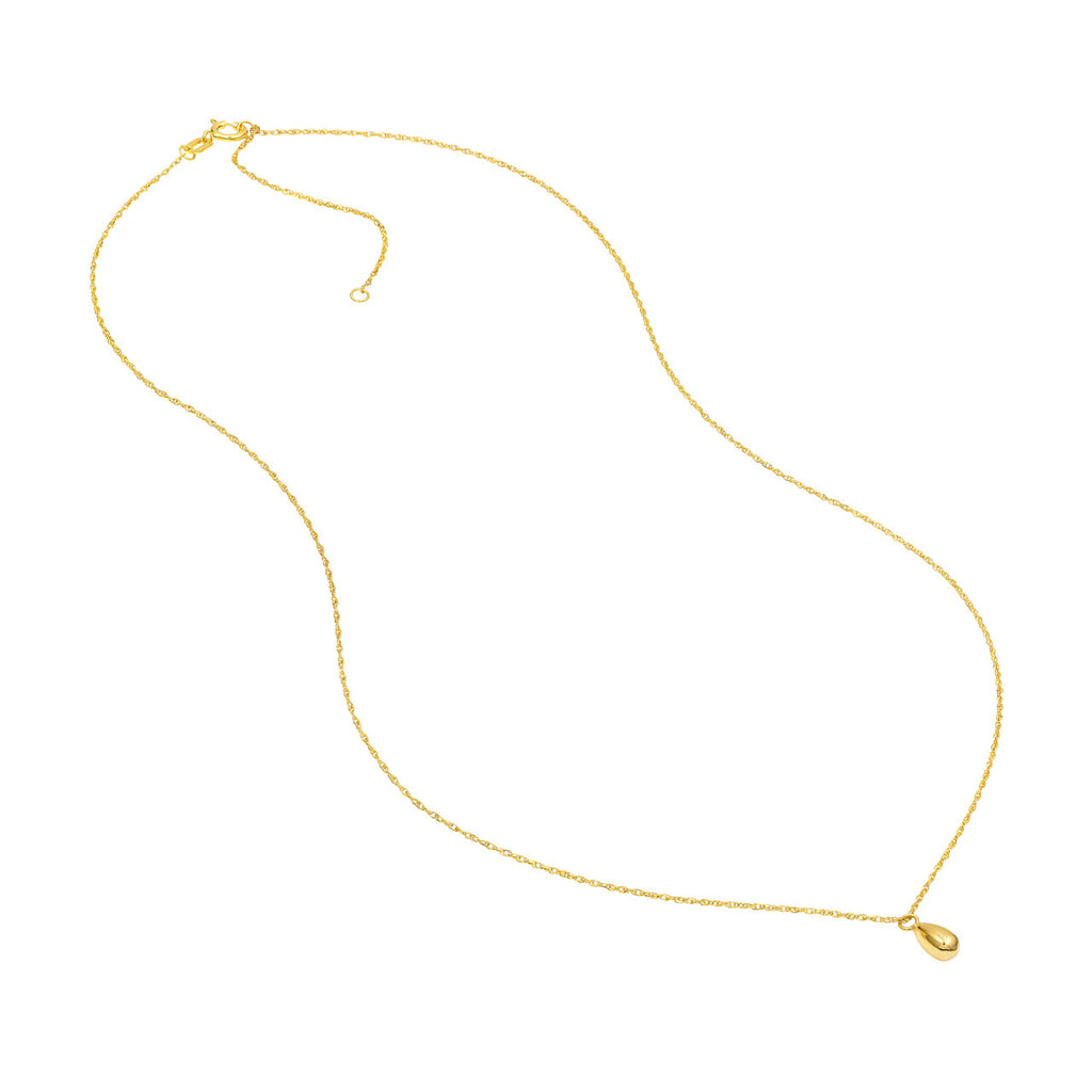 14K Gold Small Puffy Tear Drop Pendant Necklace