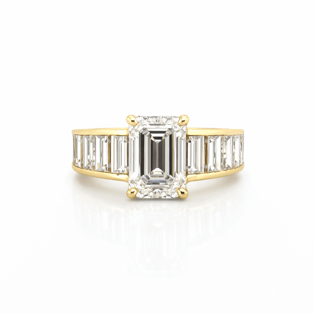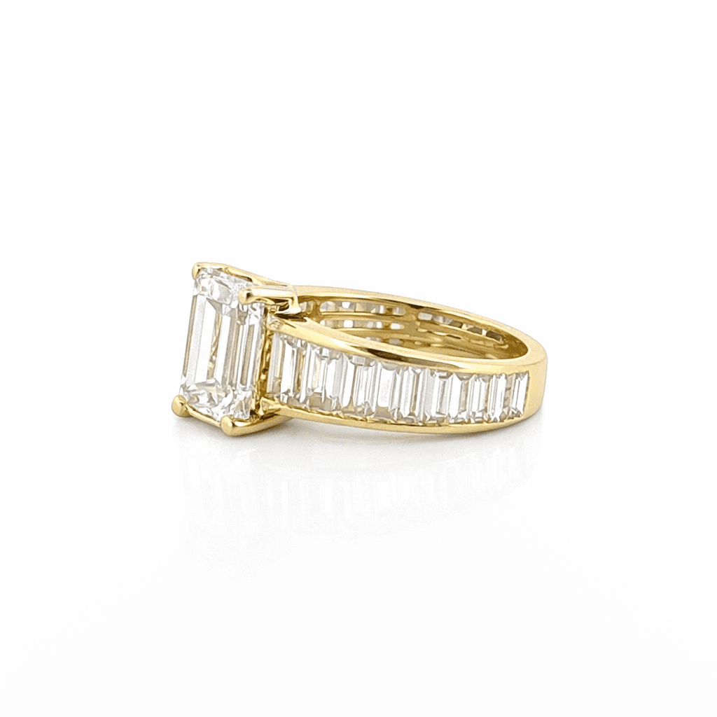 14K Gold 3.00 Carat Lab Grown Emerald Channel Set Diamond Engagement Ring