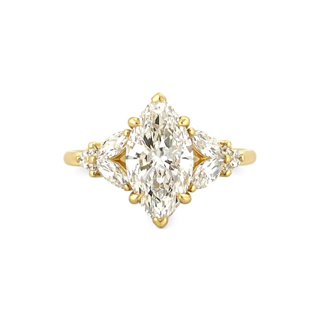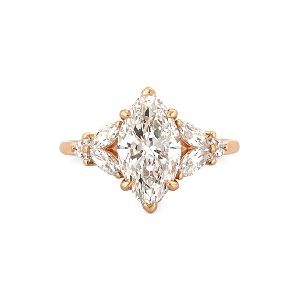 14K Gold 3.00 Carat Lab Grown Marquise Diamond Hollyberry Engagement Ring