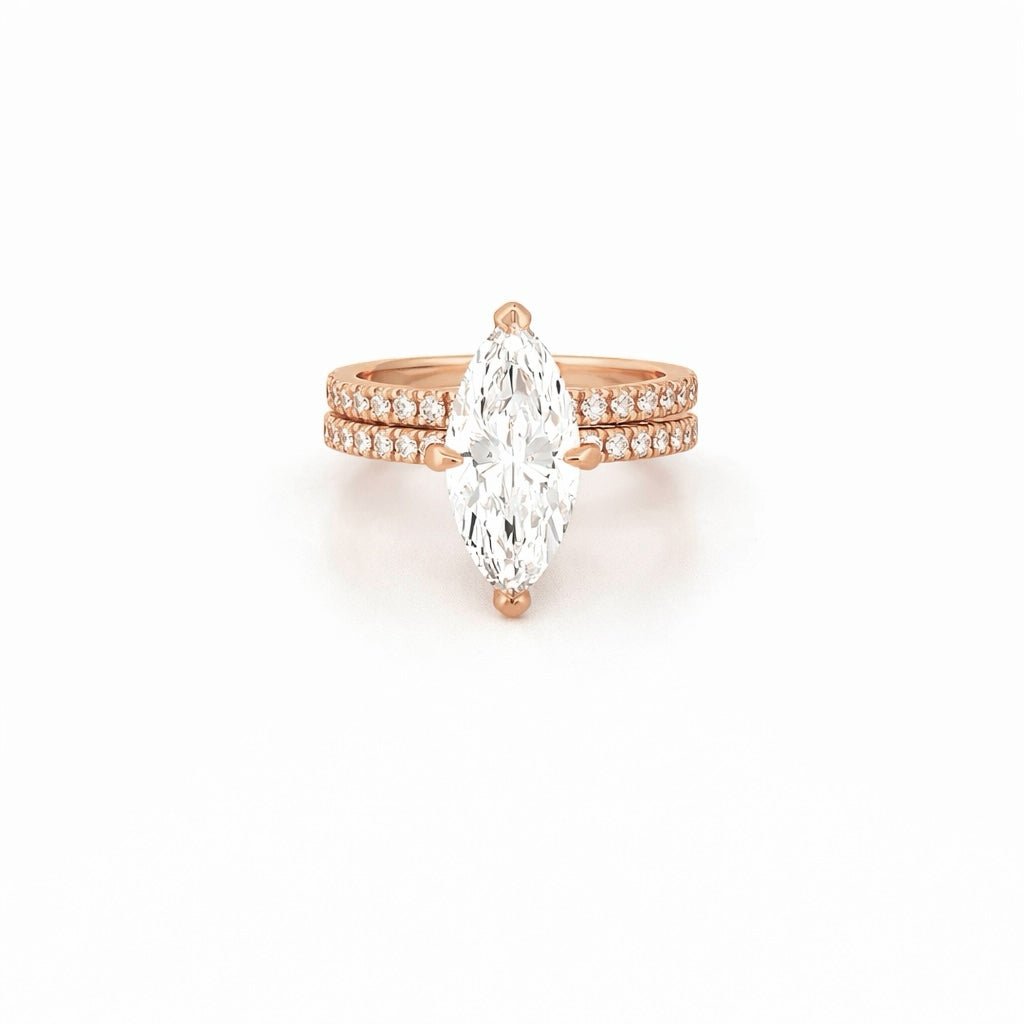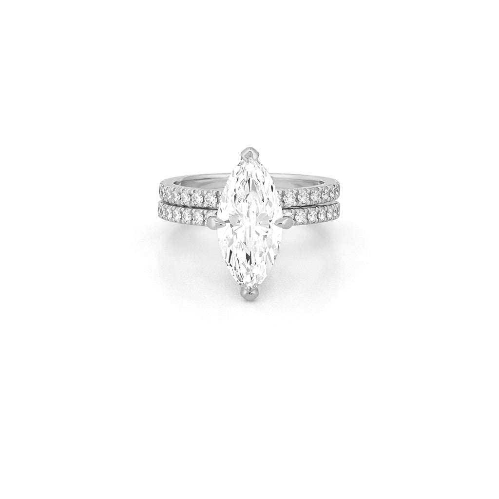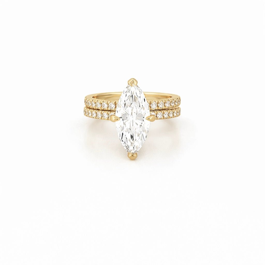 14K Gold 3.00 Carat Lab Grown Marquise Diamond Under Halo Engagement Wedding Set