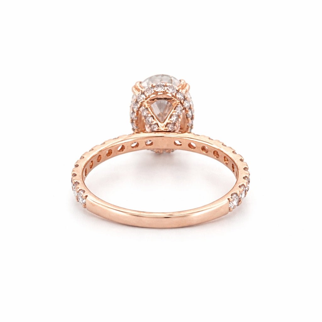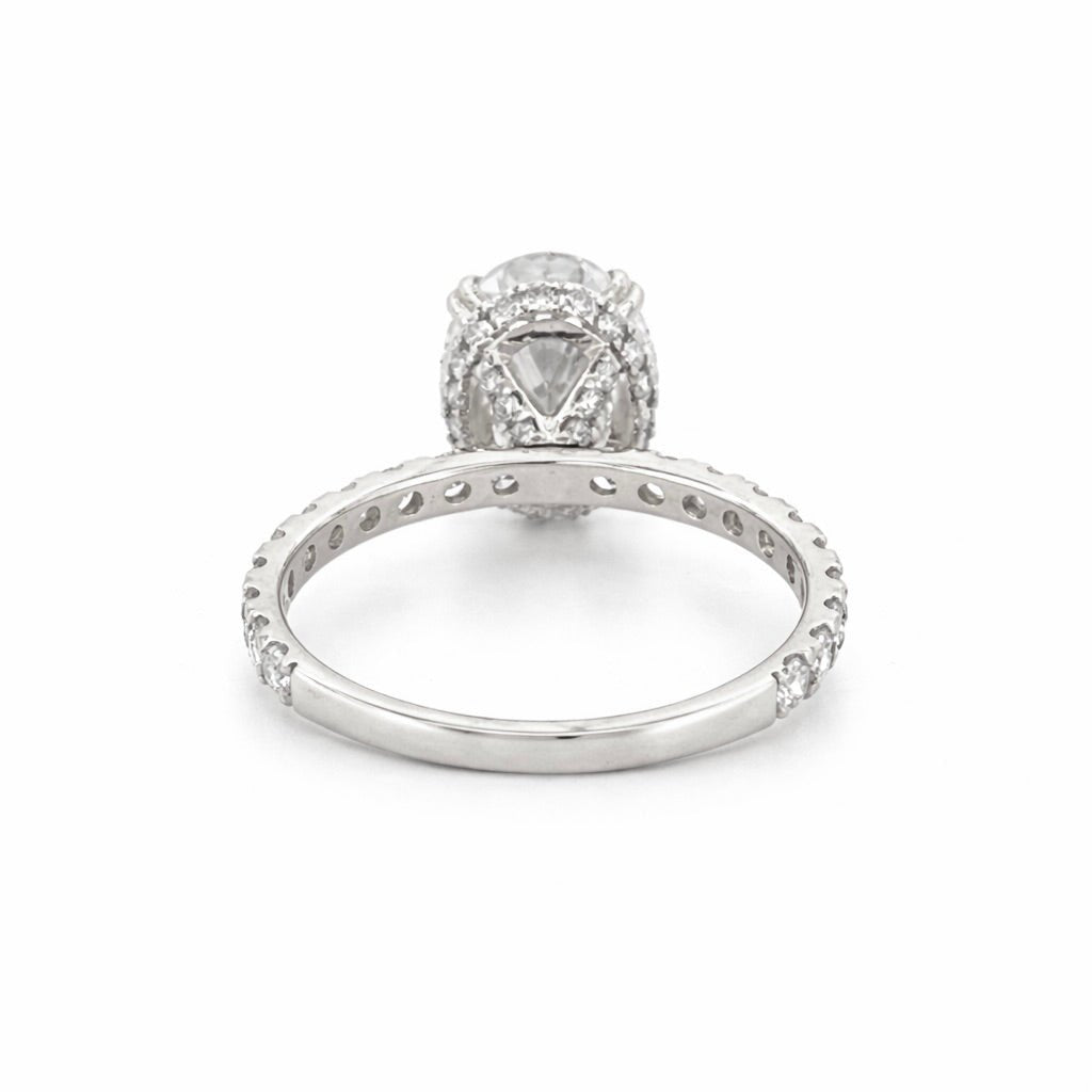 14K Gold 3.00 Carat Lab Grown Oval Diamond Prong Set Engagement Ring with Diamond Under Halo and Prongs