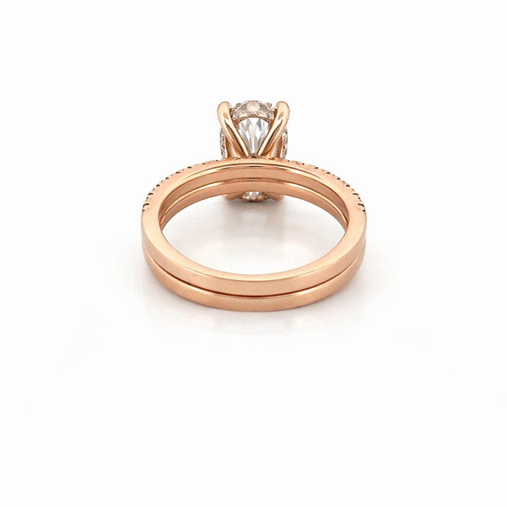 14K Gold 4.00 Carat Lab Grown Oval Diamond Under Halo Engagement Wedding Set