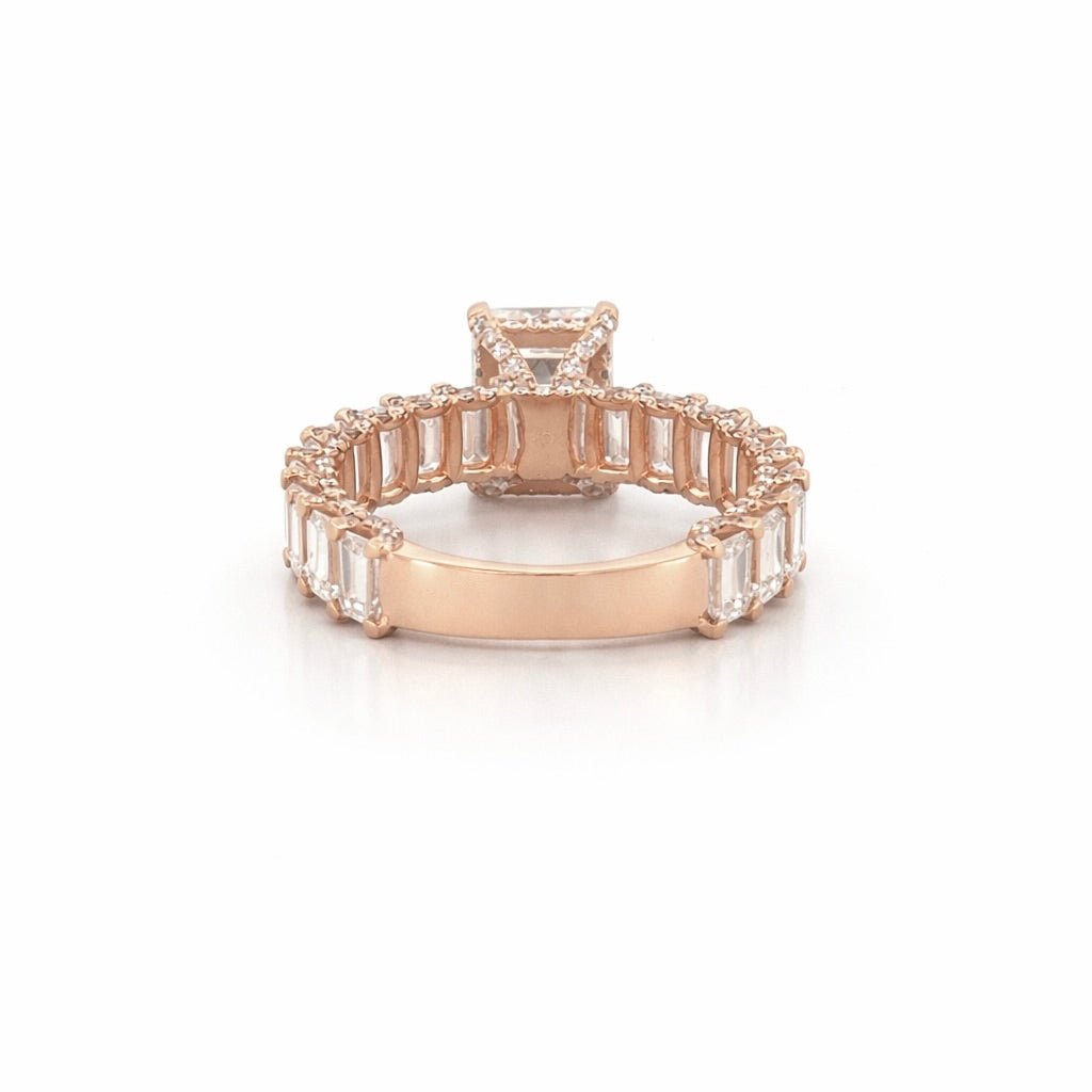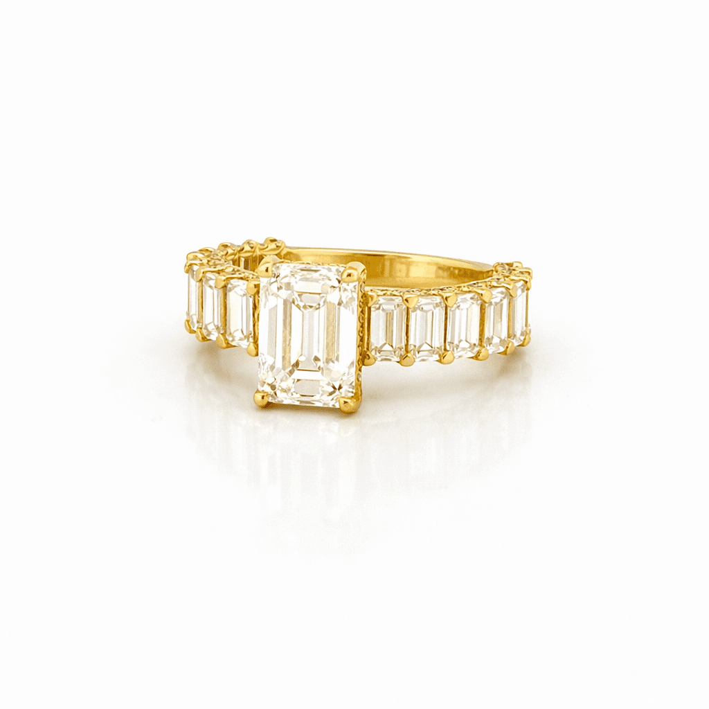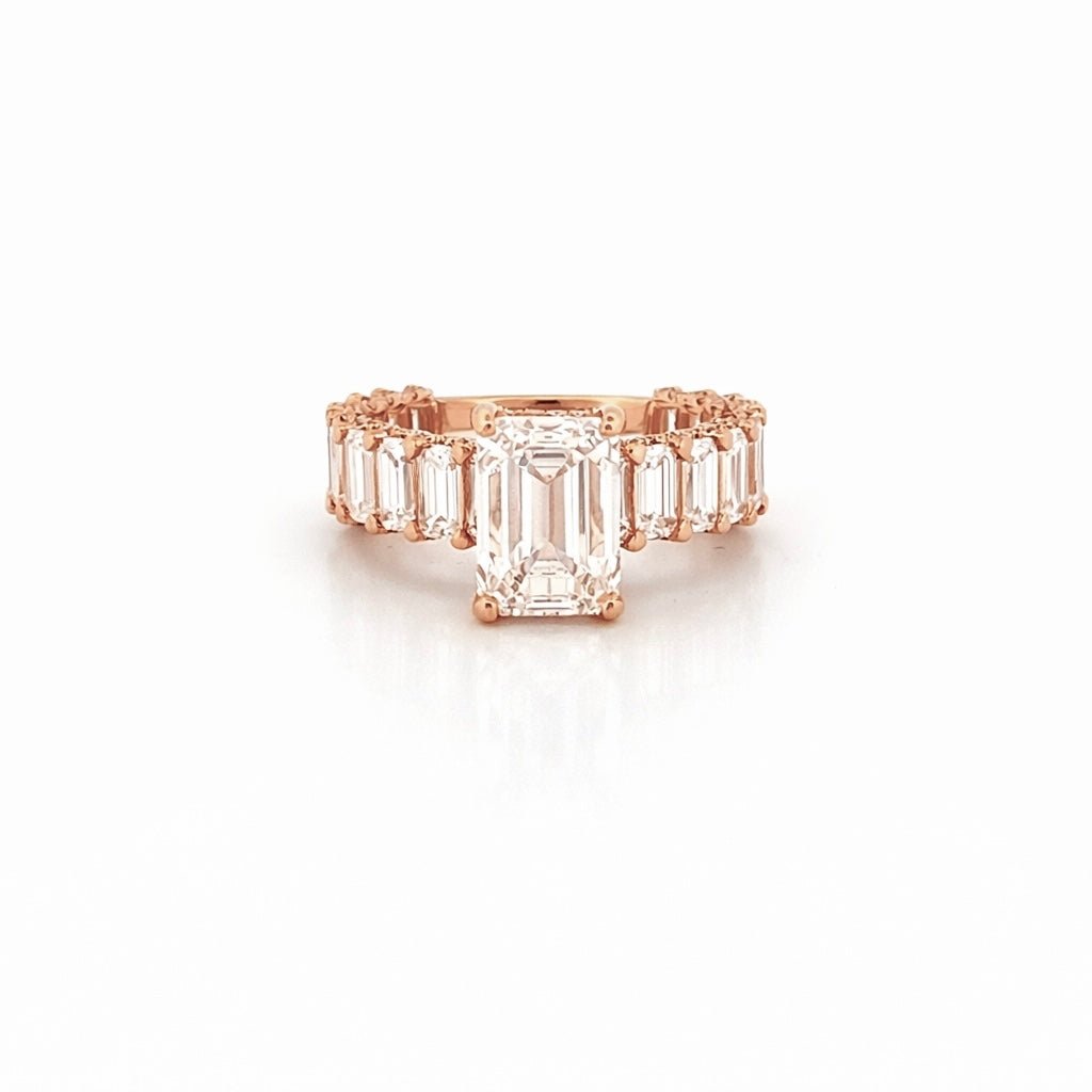 14K Gold 5.00 Carat Lab Grown Emerald Cut Diamond U Prong Engagement Ring