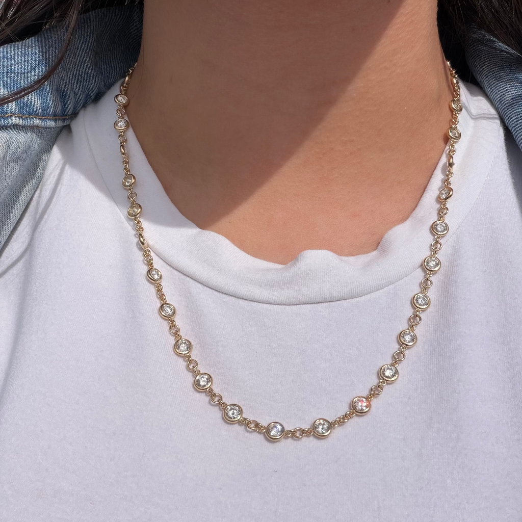 14K Gold Spaced Lab Grown Diamond Bezel Necklace