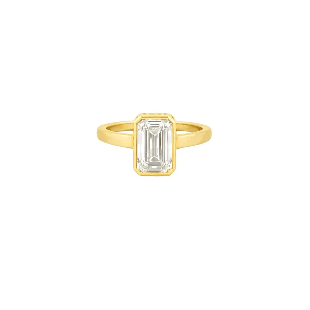 Up for sale we have a beautiful 14K Gold 2.00 Carat Lab Grown Emerald Diamond Solitaire Cathedral Under Halo Engagement Ring.