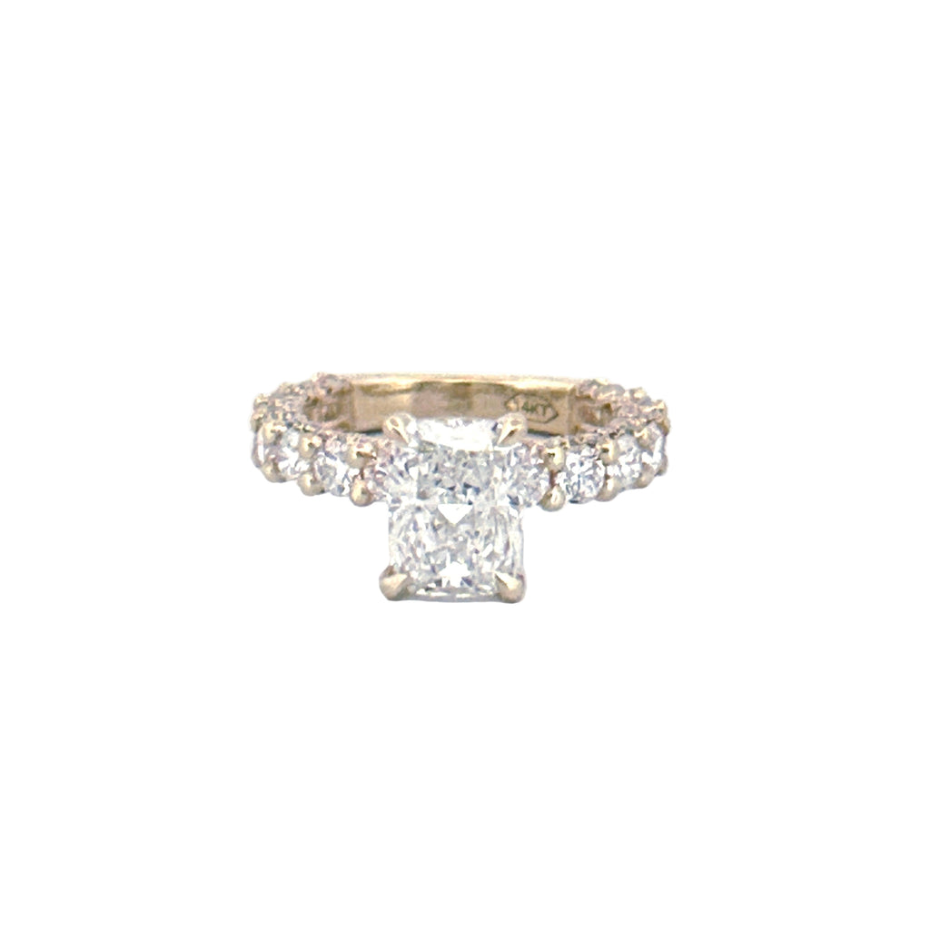 Up for sale we have a beautiful 14K Gold 2.00 Carat Lab Grown Elongated Cushion Double Diamond Under Halo U Prong Engagement Ring.