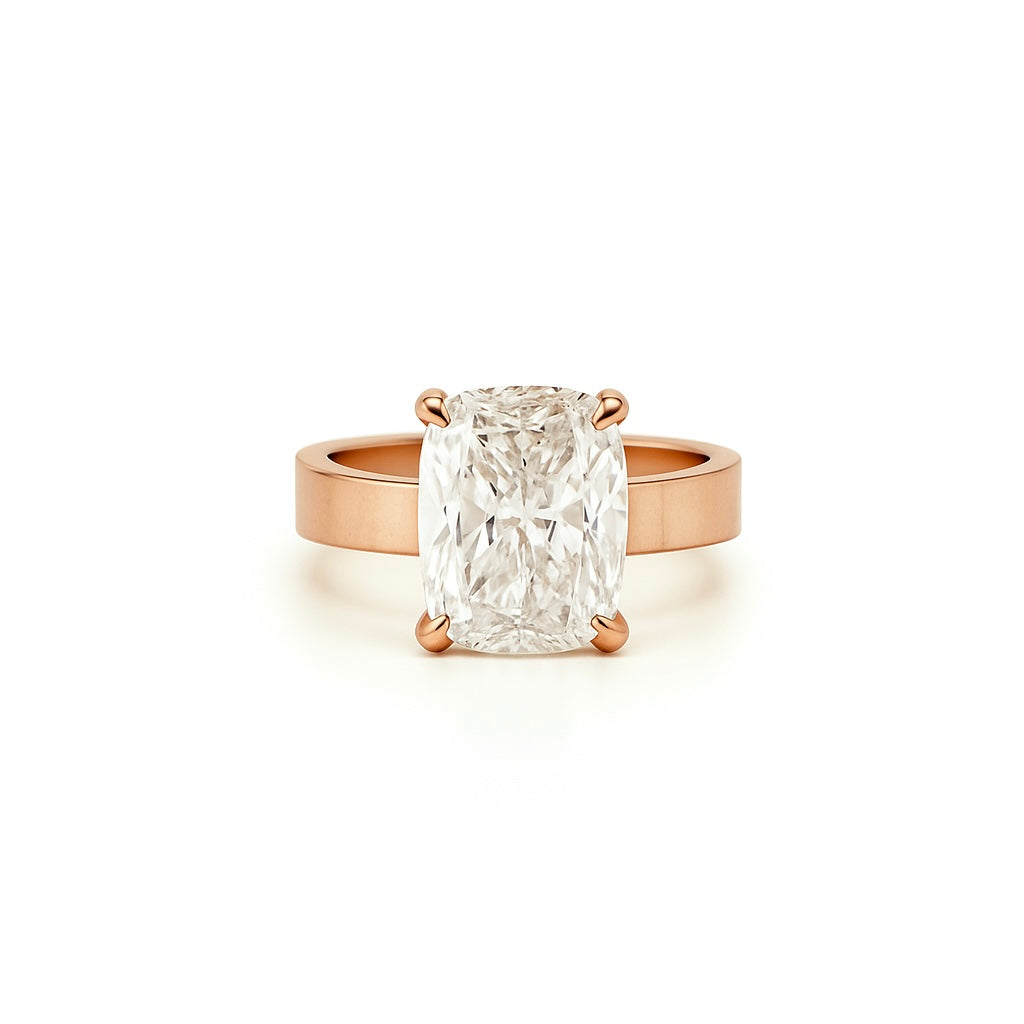 14K Gold 3.00 Carat Lab Grown Elongated Cushion Thick Solitaire Engagement Ring