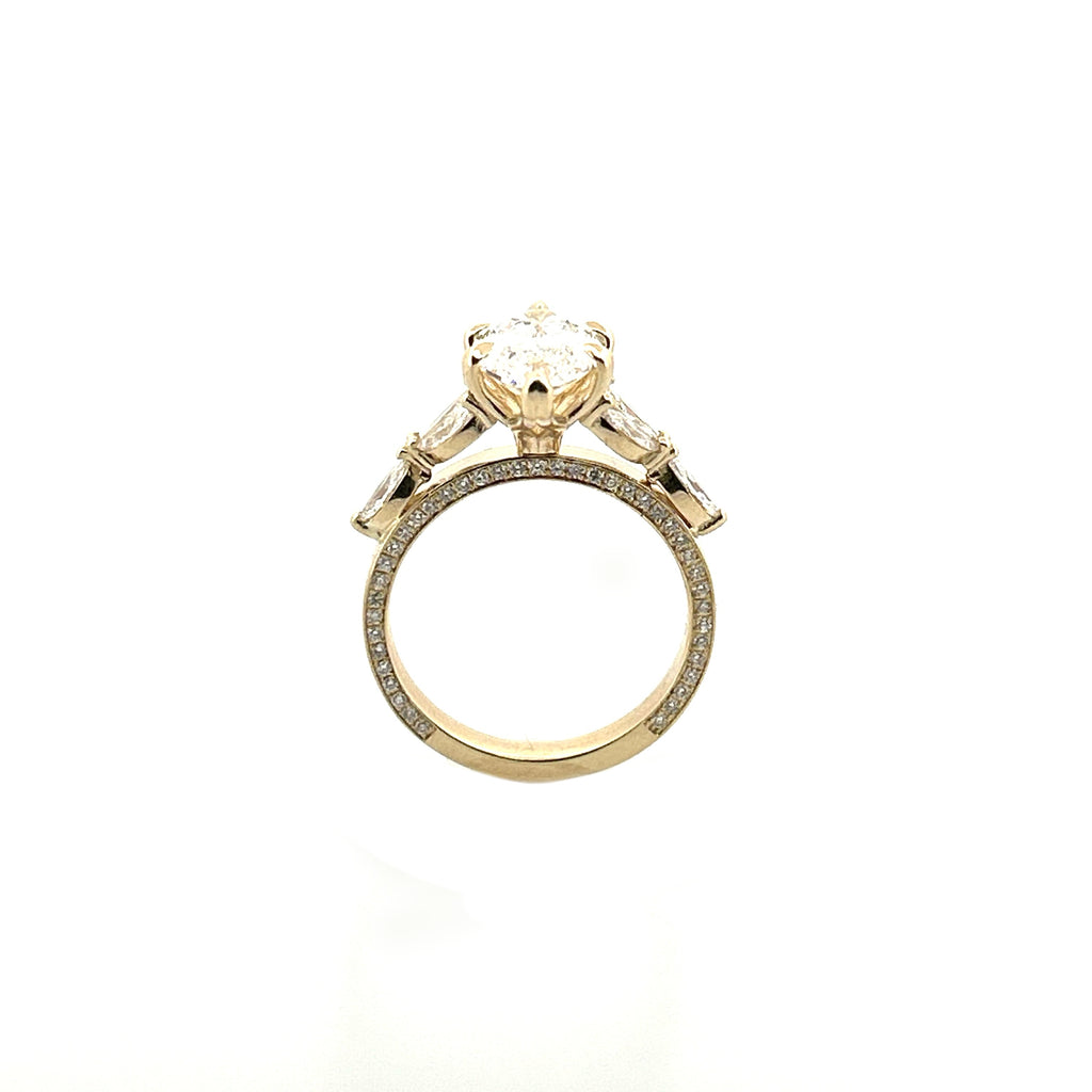 Up for sale we have a beautiful 14K Gold 3.00 Carat Lab Grown Multi Marquise Engagement Ring with Channel Set Diamond Walls.