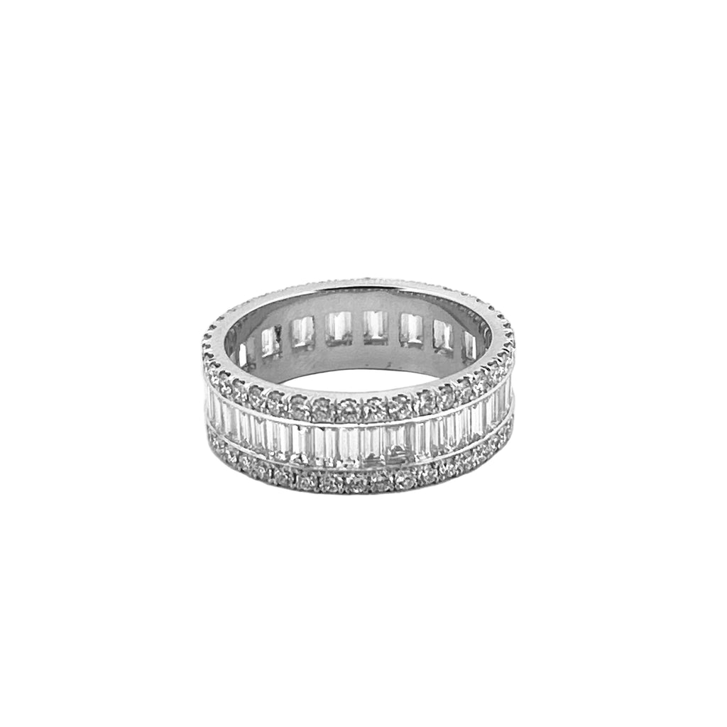 Up for sale is a beautiful 14K Gold 8MM Natural Baguette and Round Diamond Eternity Band.