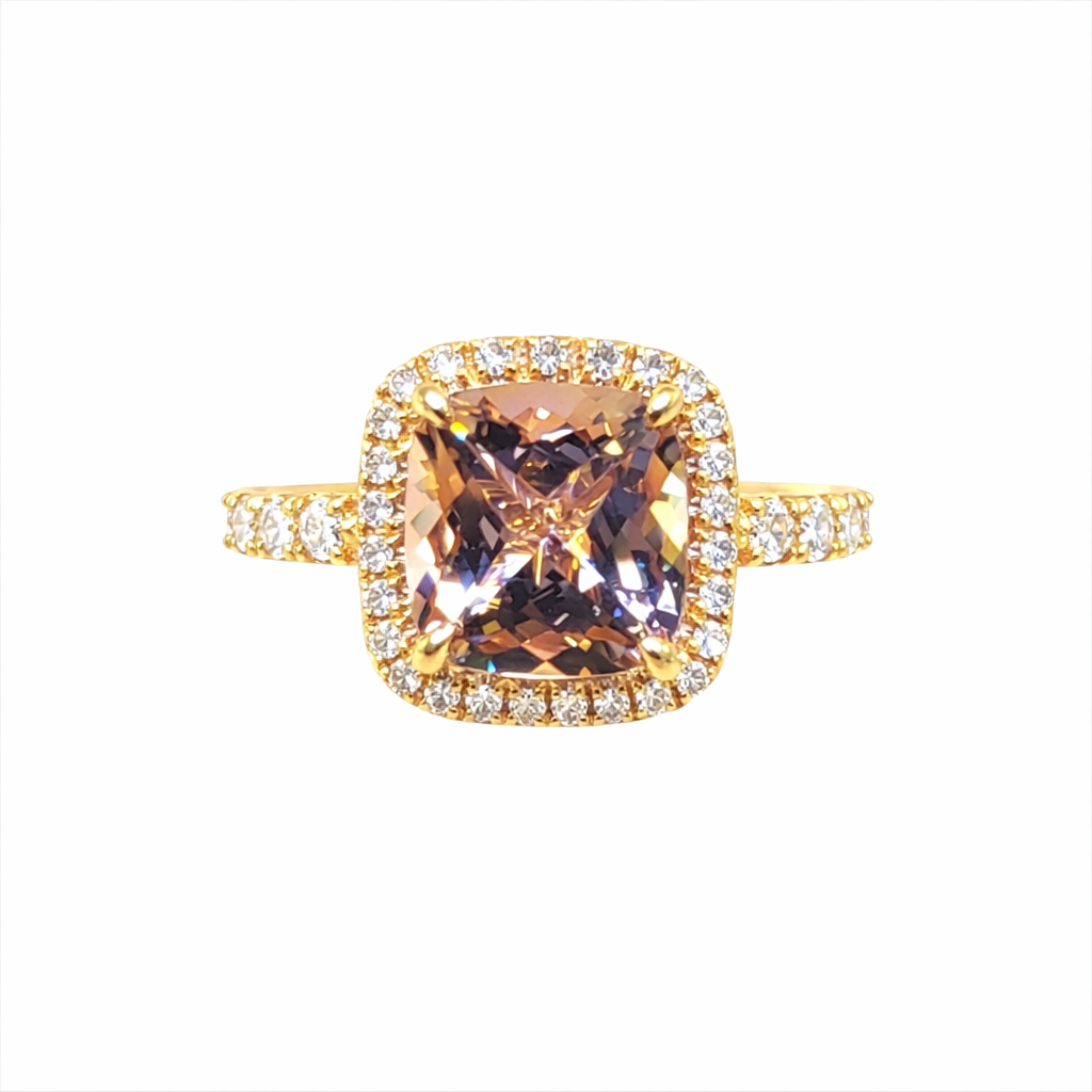 14K Gold Double Under Halo 3D Band with Cushion Morganite Engagement Ring