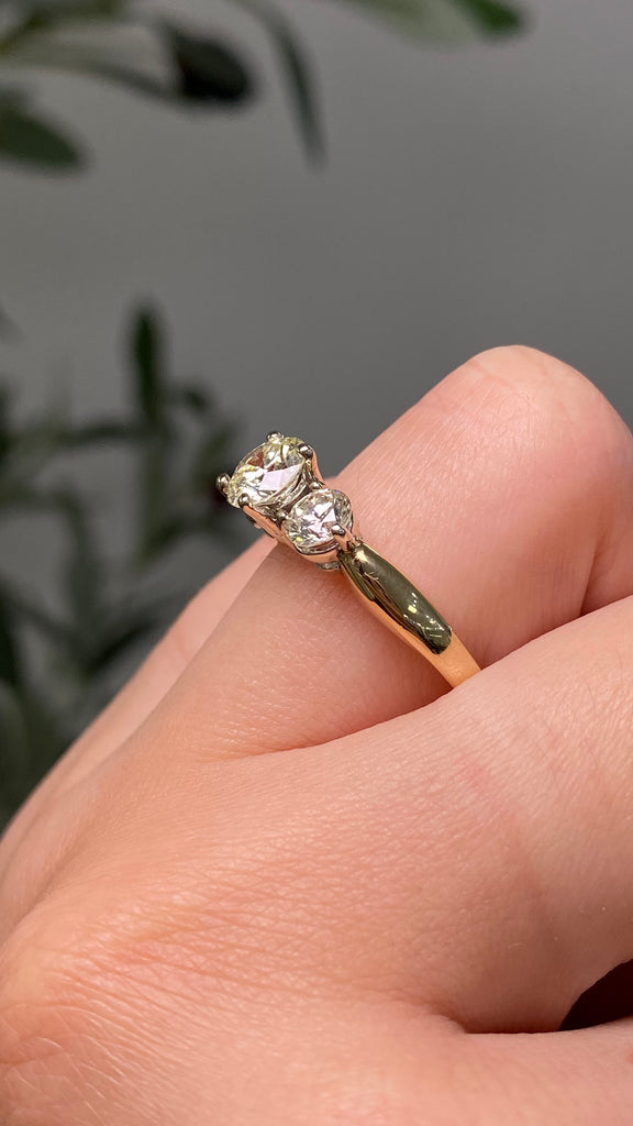 14K Two-Tone Gold 1.10 Carat Natural 3 Stone Round Cut Diamond Basket Engagement Ring