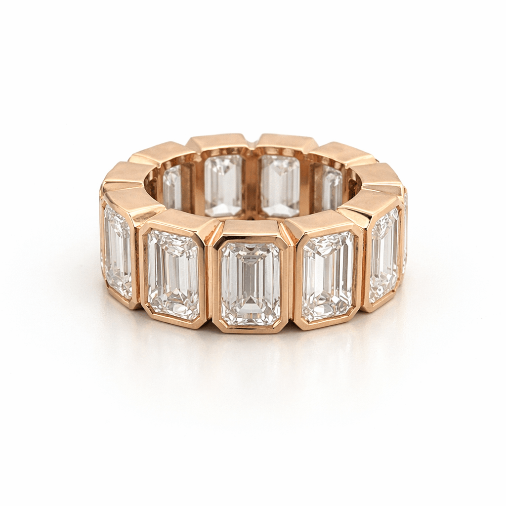 14K Gold 8.6MM Lab Grown Emerald Bezel Diamond Eternity Band