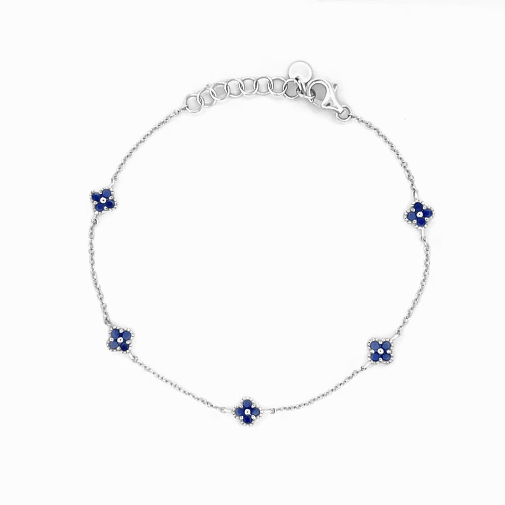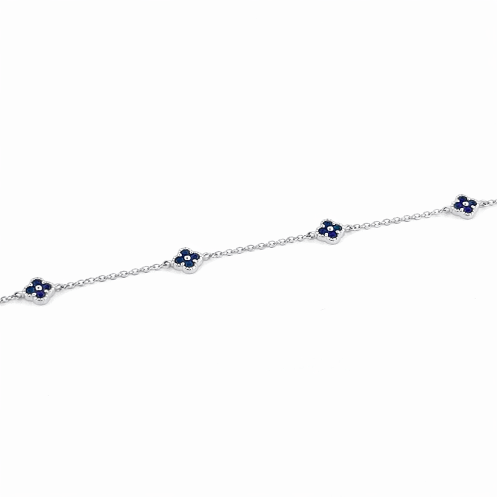 14K Gold Clover Sapphire Station Bracelet