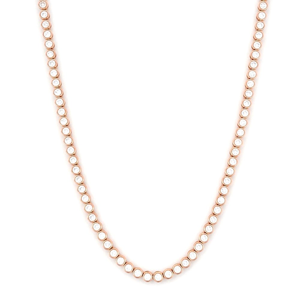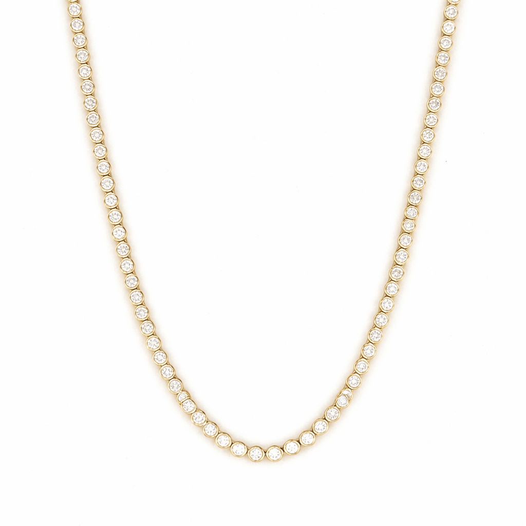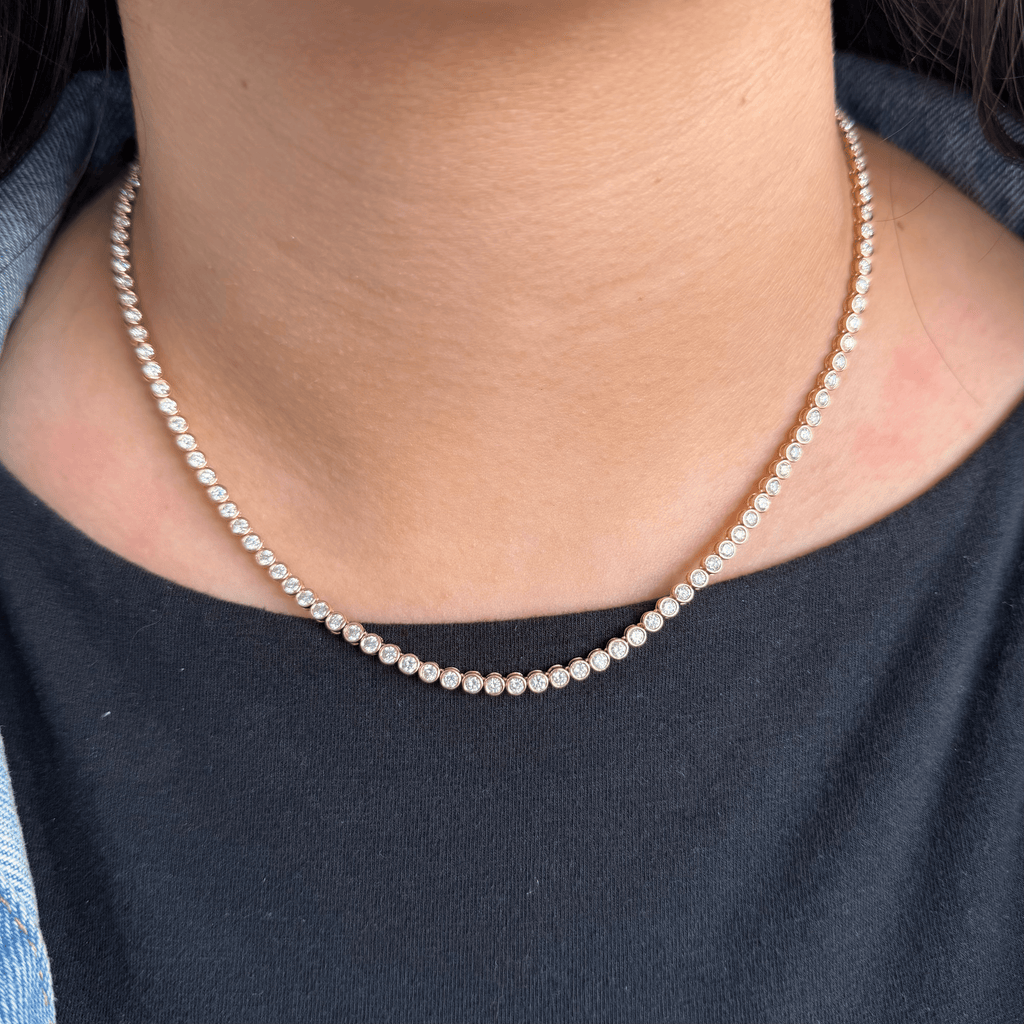 14K Gold Round Bezel Lab Grown Diamond Tennis Necklace