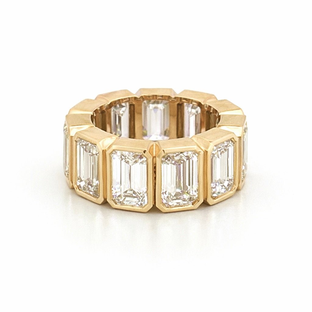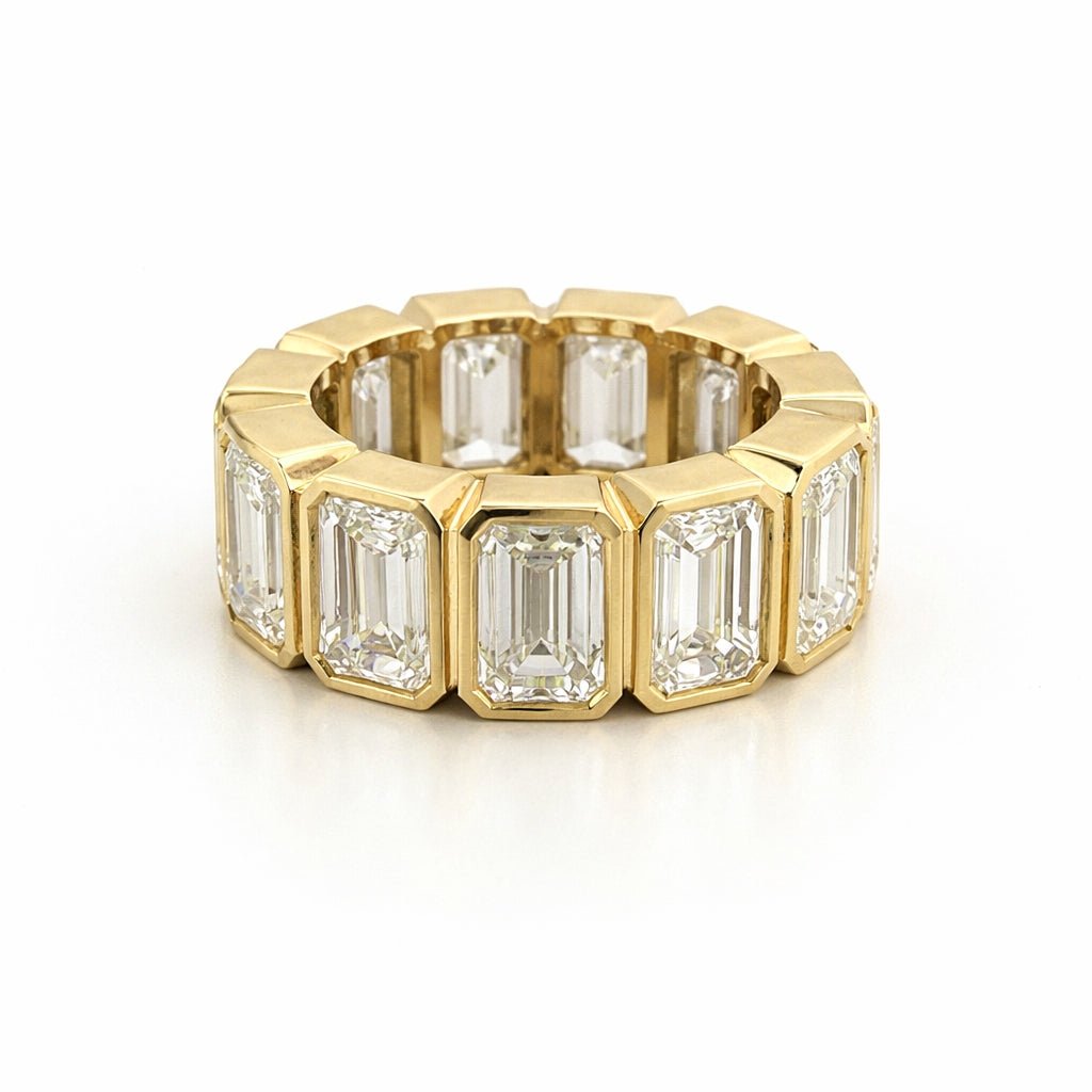 14K Gold 8.6MM Lab Grown Emerald Bezel Diamond Eternity Band