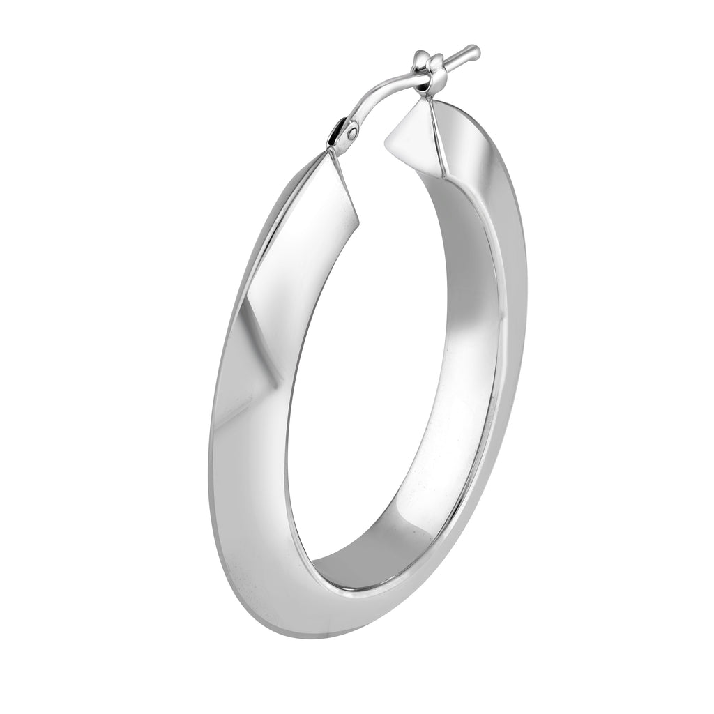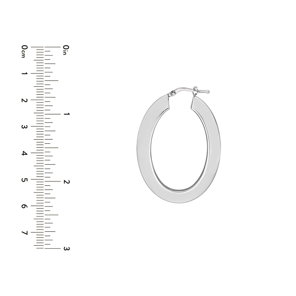 Sterling Silver Large Edged Oval Hoop Earrings