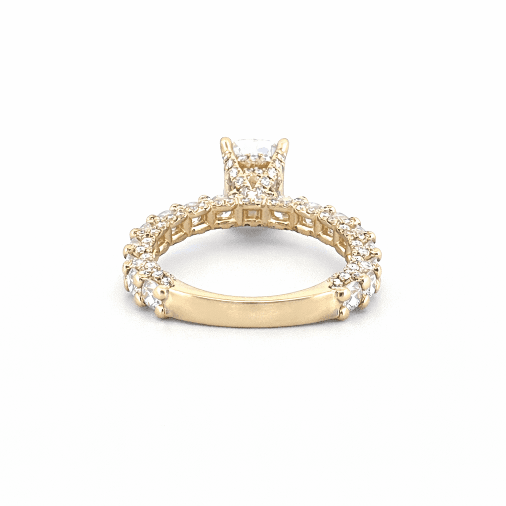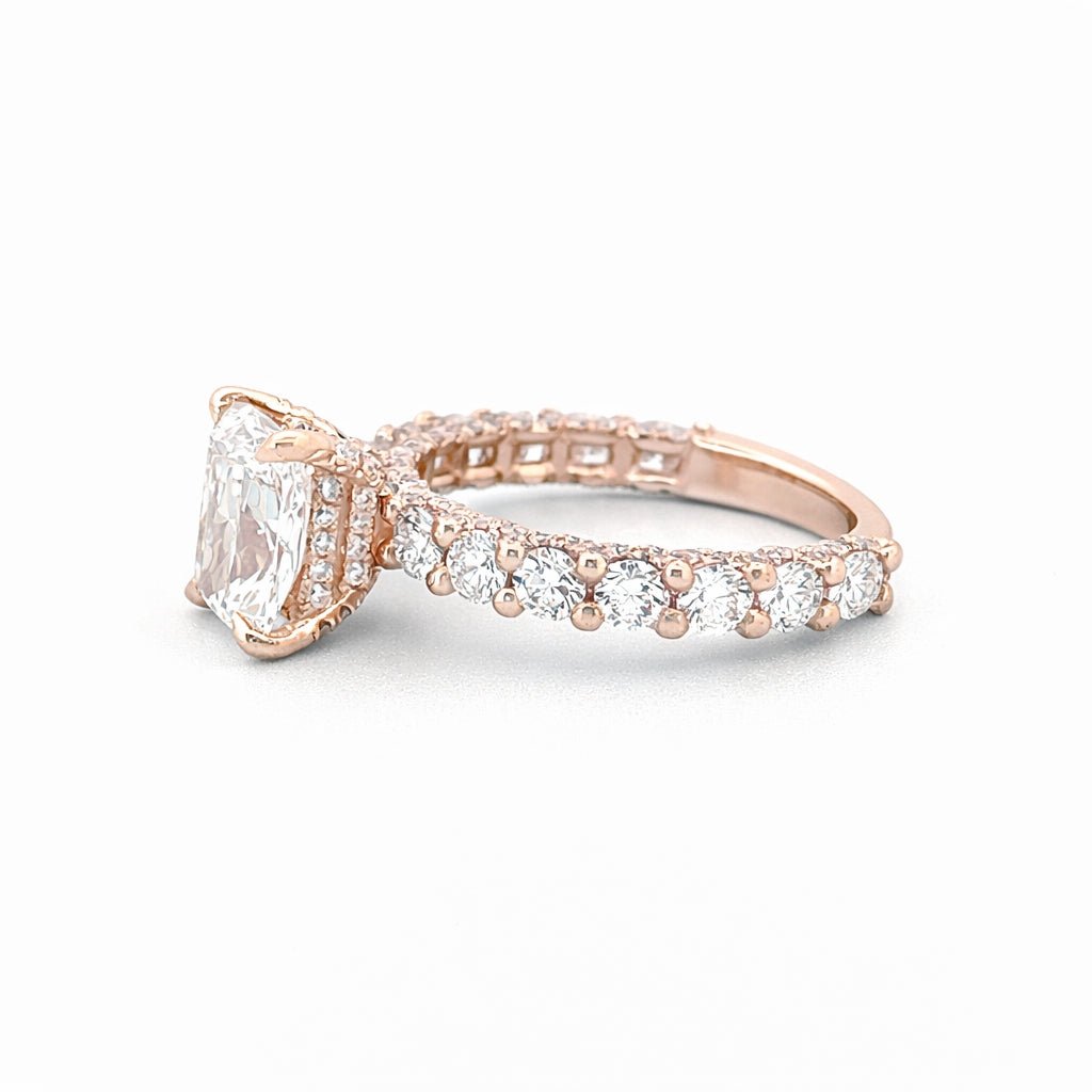 14K Gold 2.00 Carat Lab Grown Elongated Cushion Diamond Double Under Halo U Prong Engagement Ring