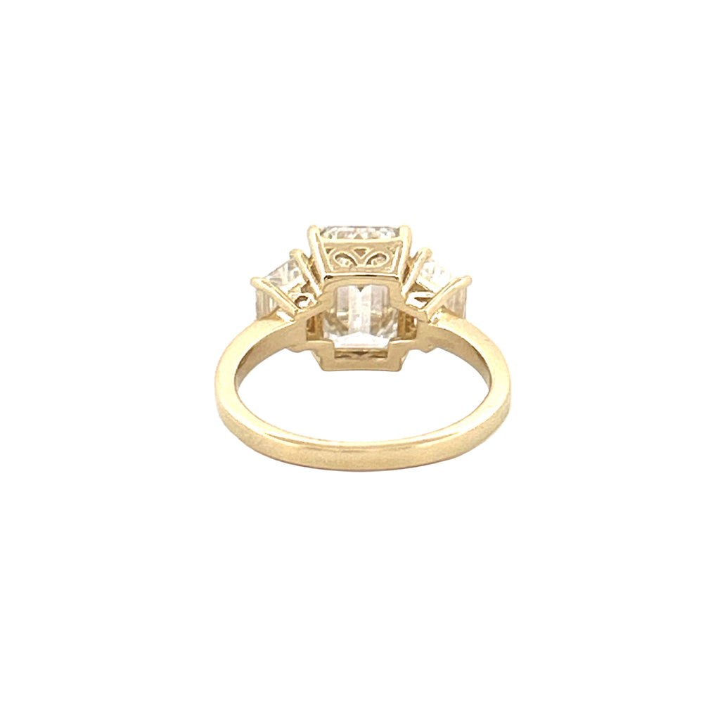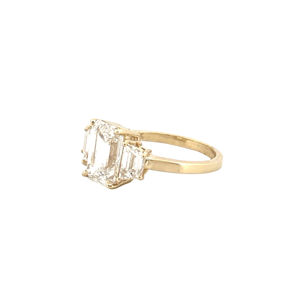 14K Gold Three Stone 3.00 Carat Lab Grown Emerald Engagement Ring