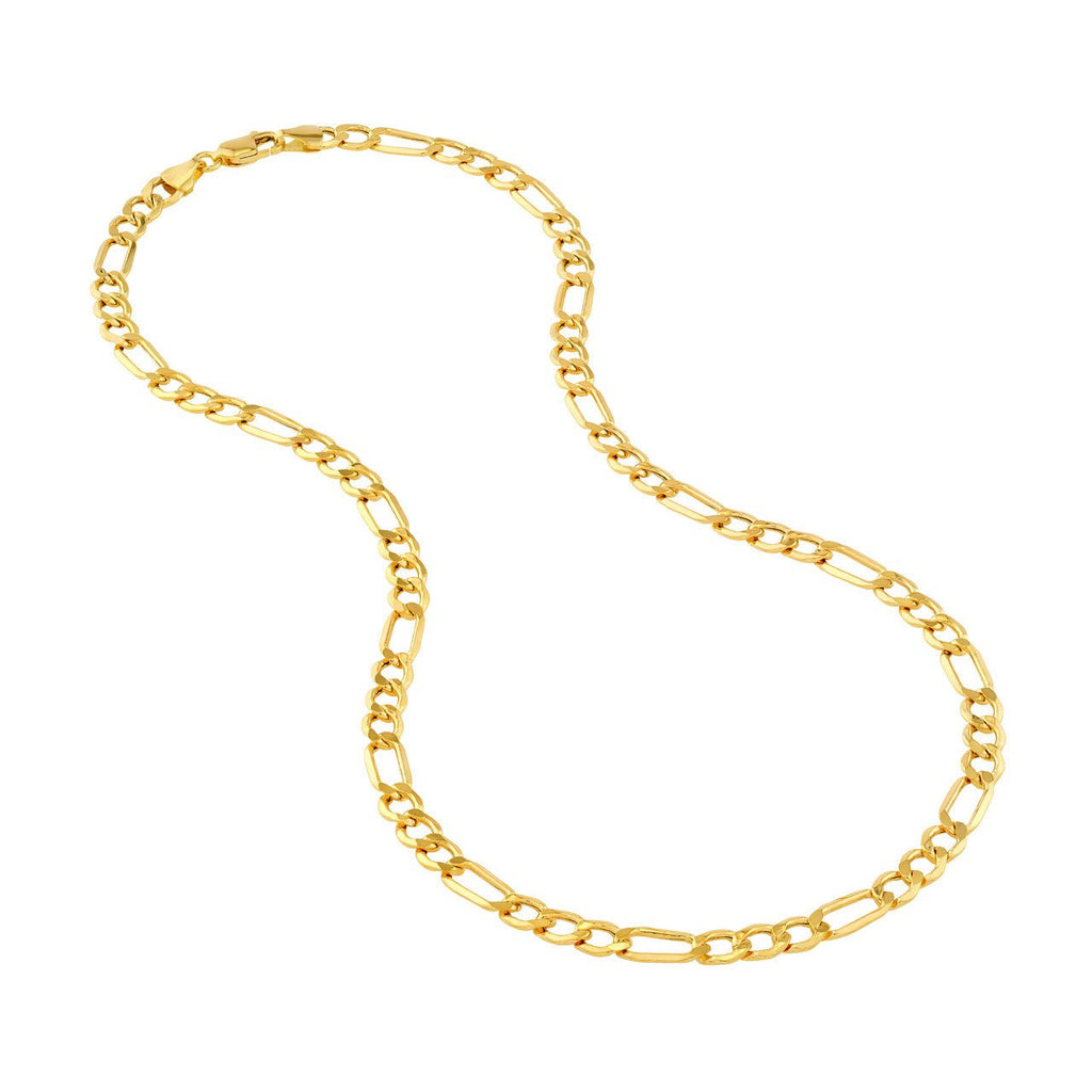 14K Gold 6.40MM Hollow Diamond Cut Figaro Chain Necklace