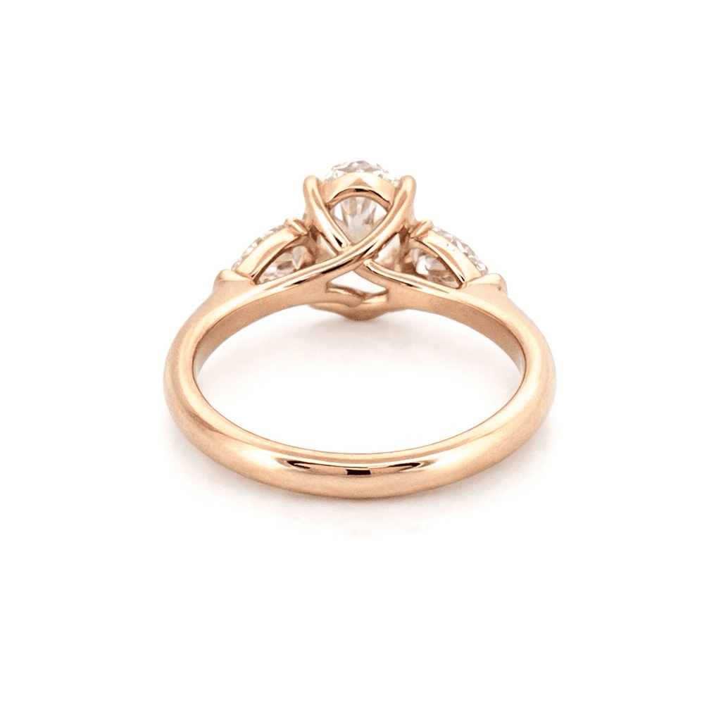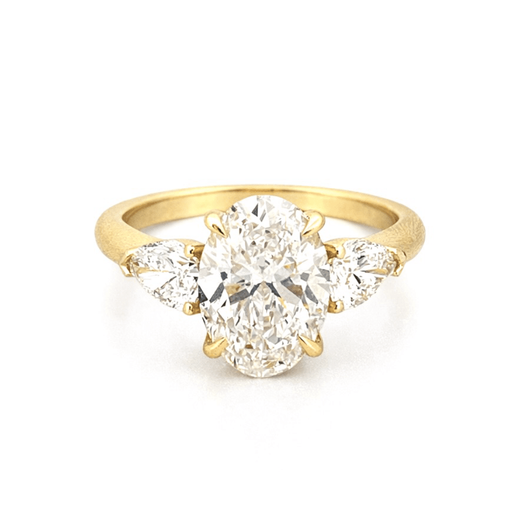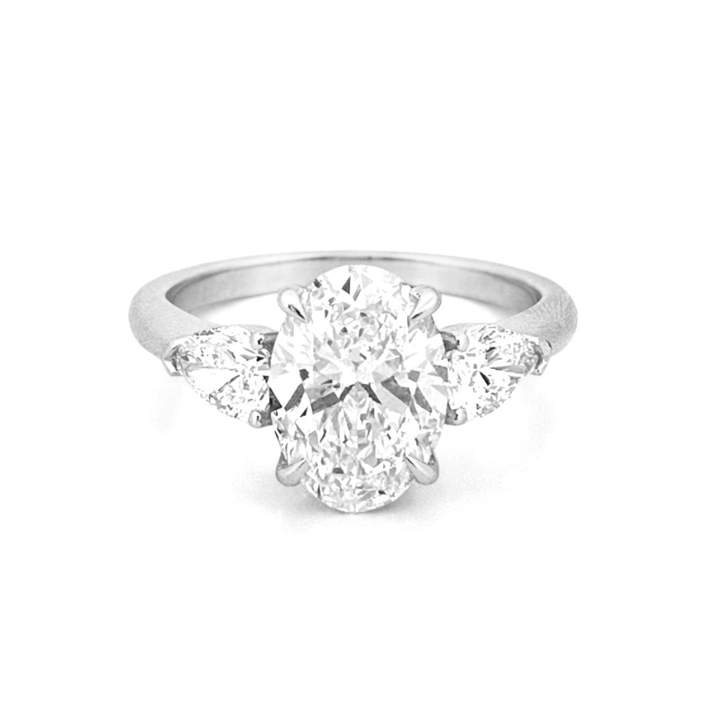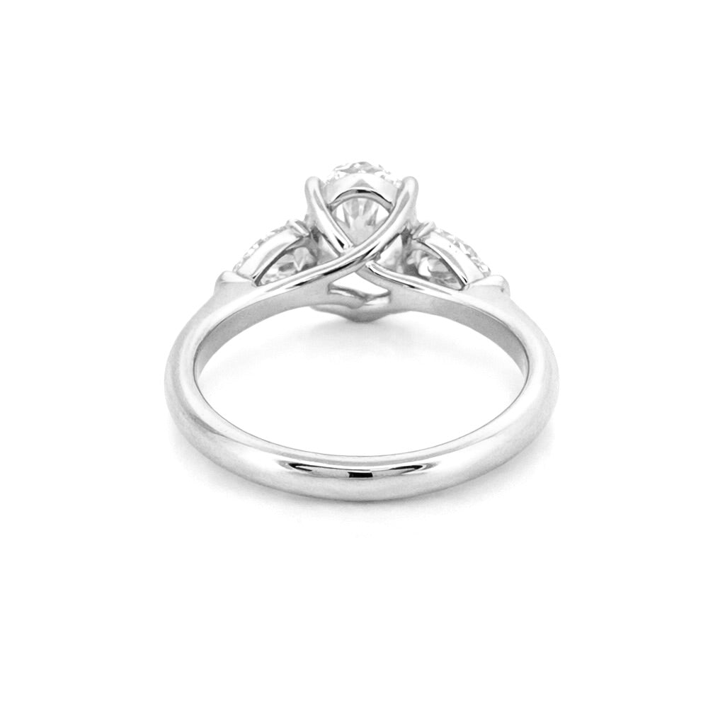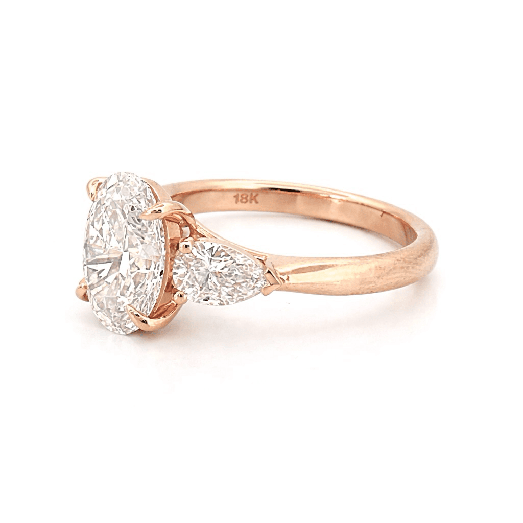 14K Gold Three Stone 3.00 Carat Oval and Pear Cut Lab Grown Diamond Solitaire Engagement Ring