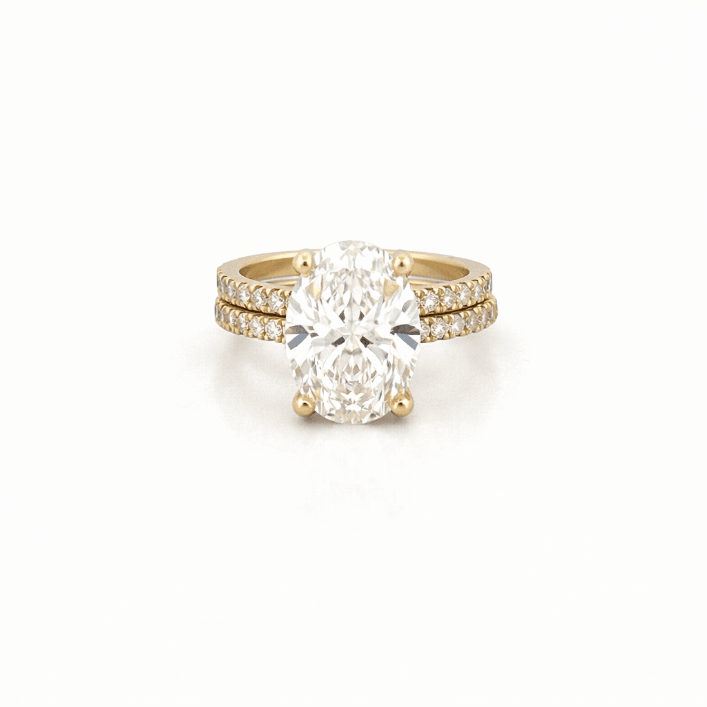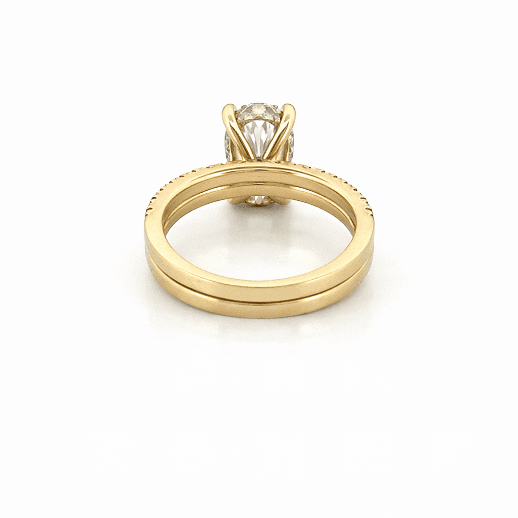 14K Gold 2.00 Carat Lab Grown Oval Diamond Under Halo Engagement Wedding Set