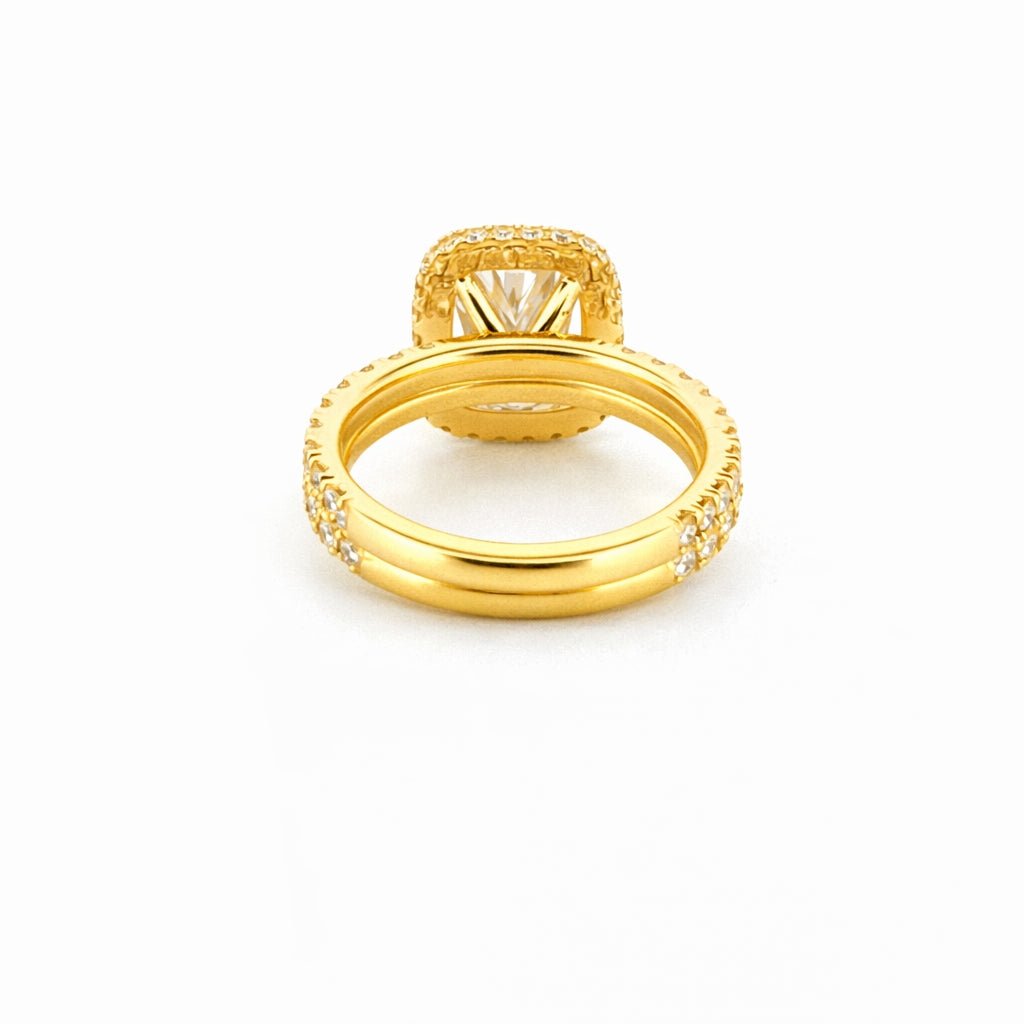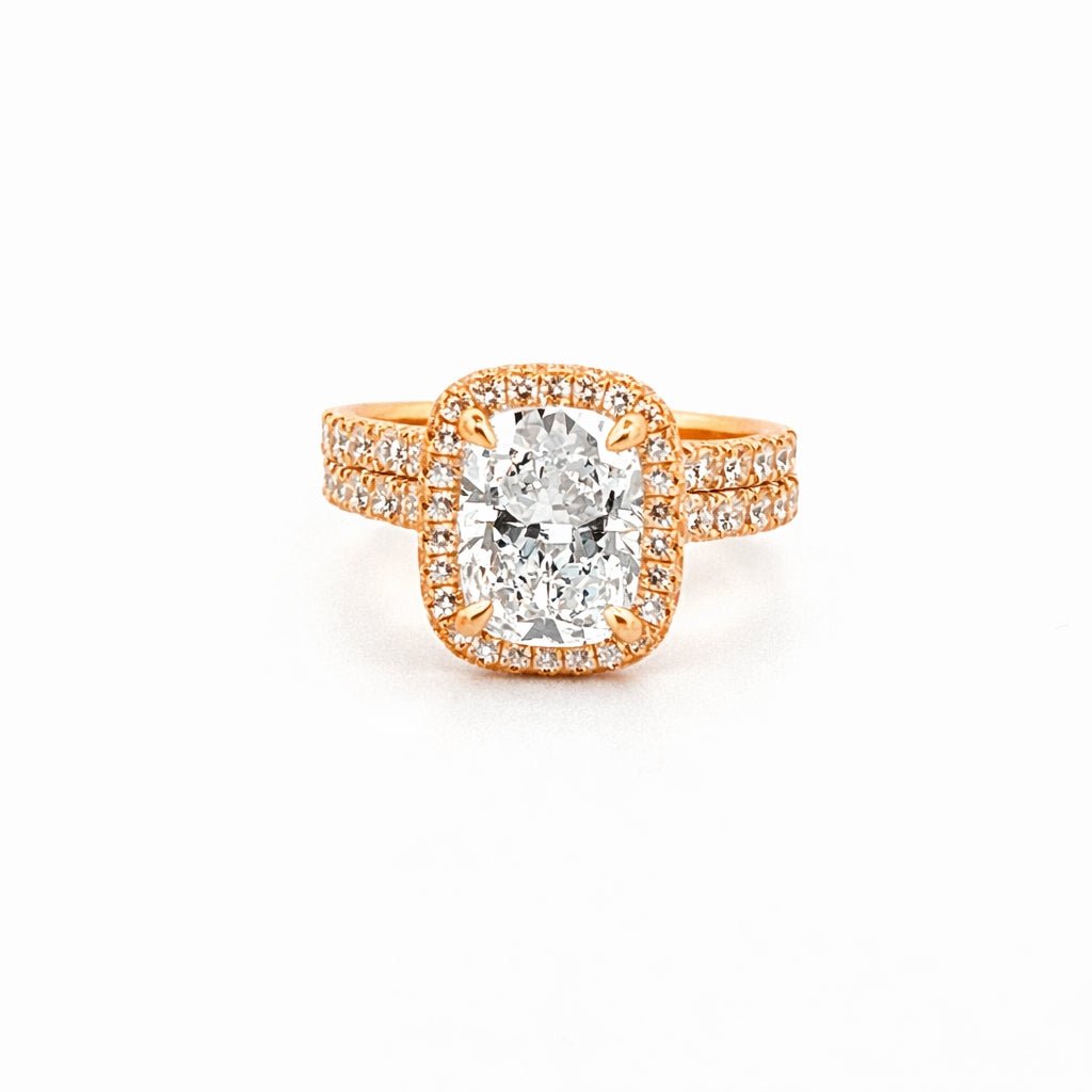 14K Gold 2.50 Carat Lab Grown Cushion Diamond Halo Prong Wedding Set