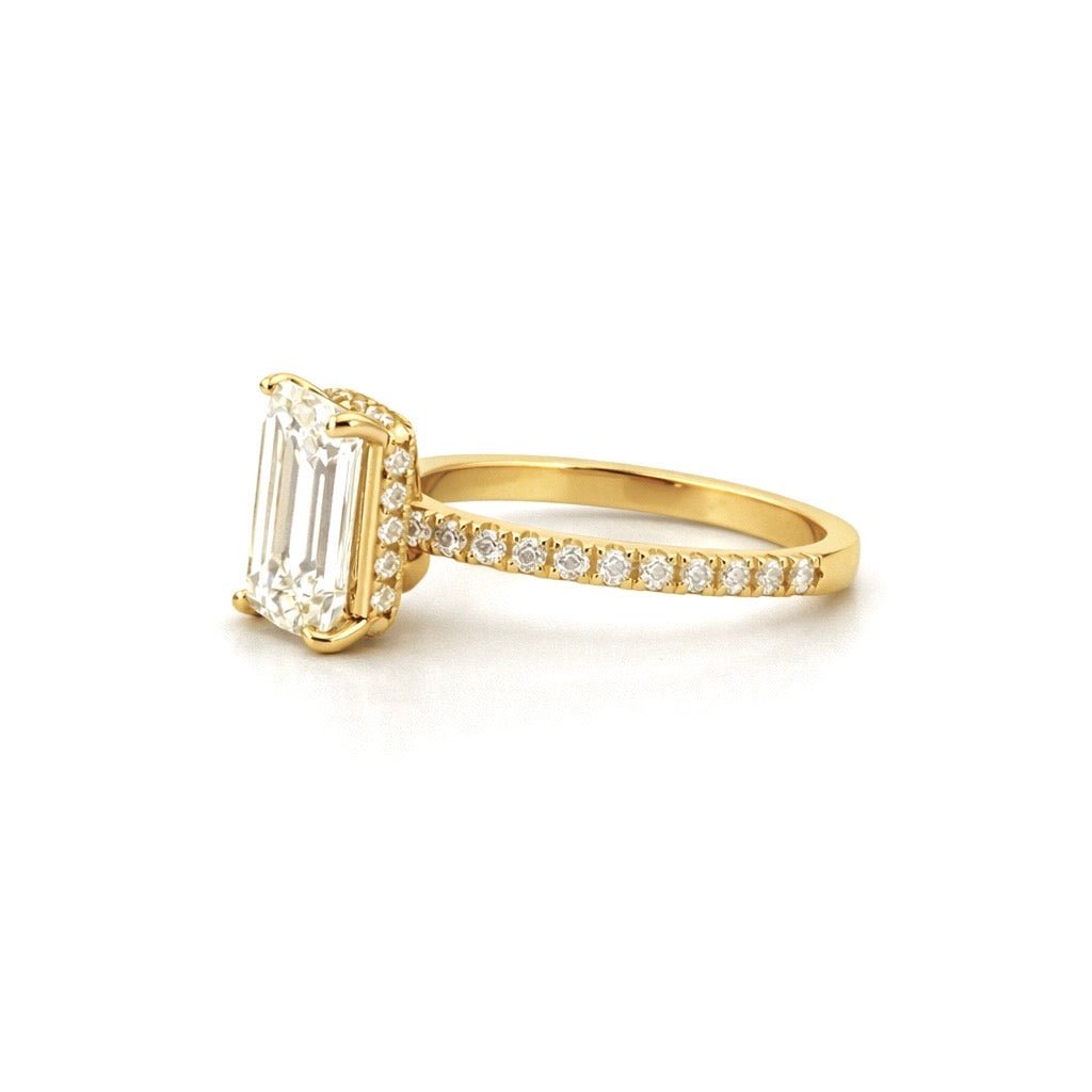 14K Gold 3.00 Carat Lab Grown Emerald Diamond Under Halo Engagement Ring
