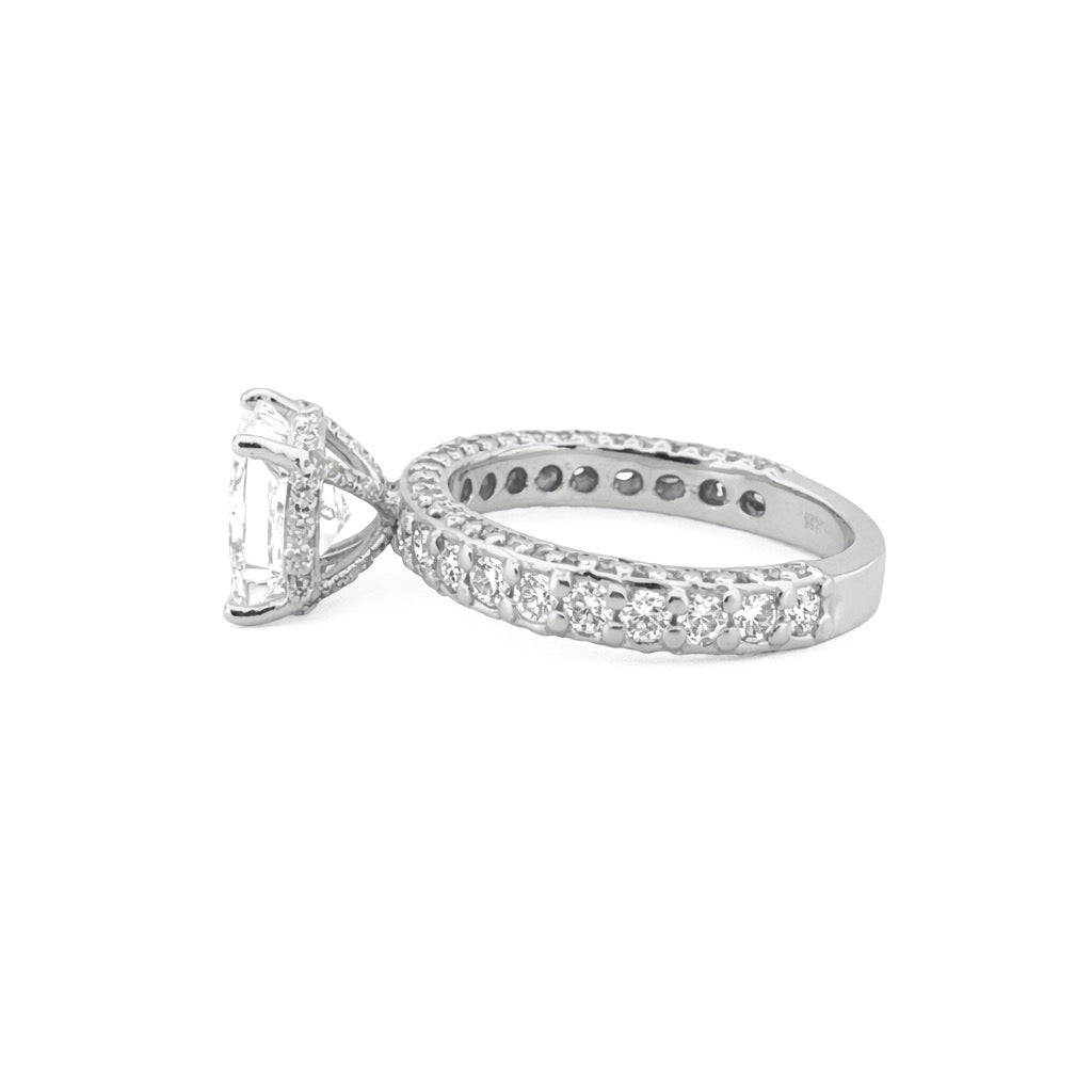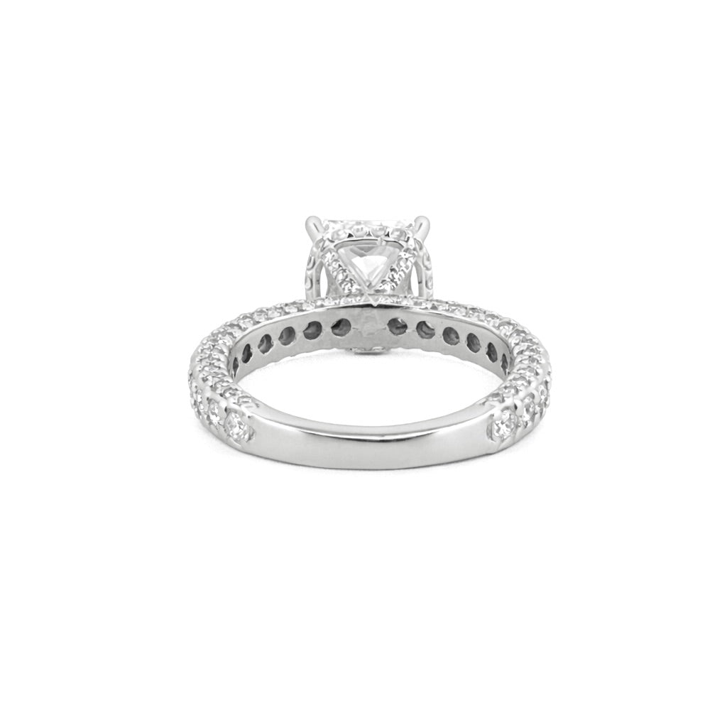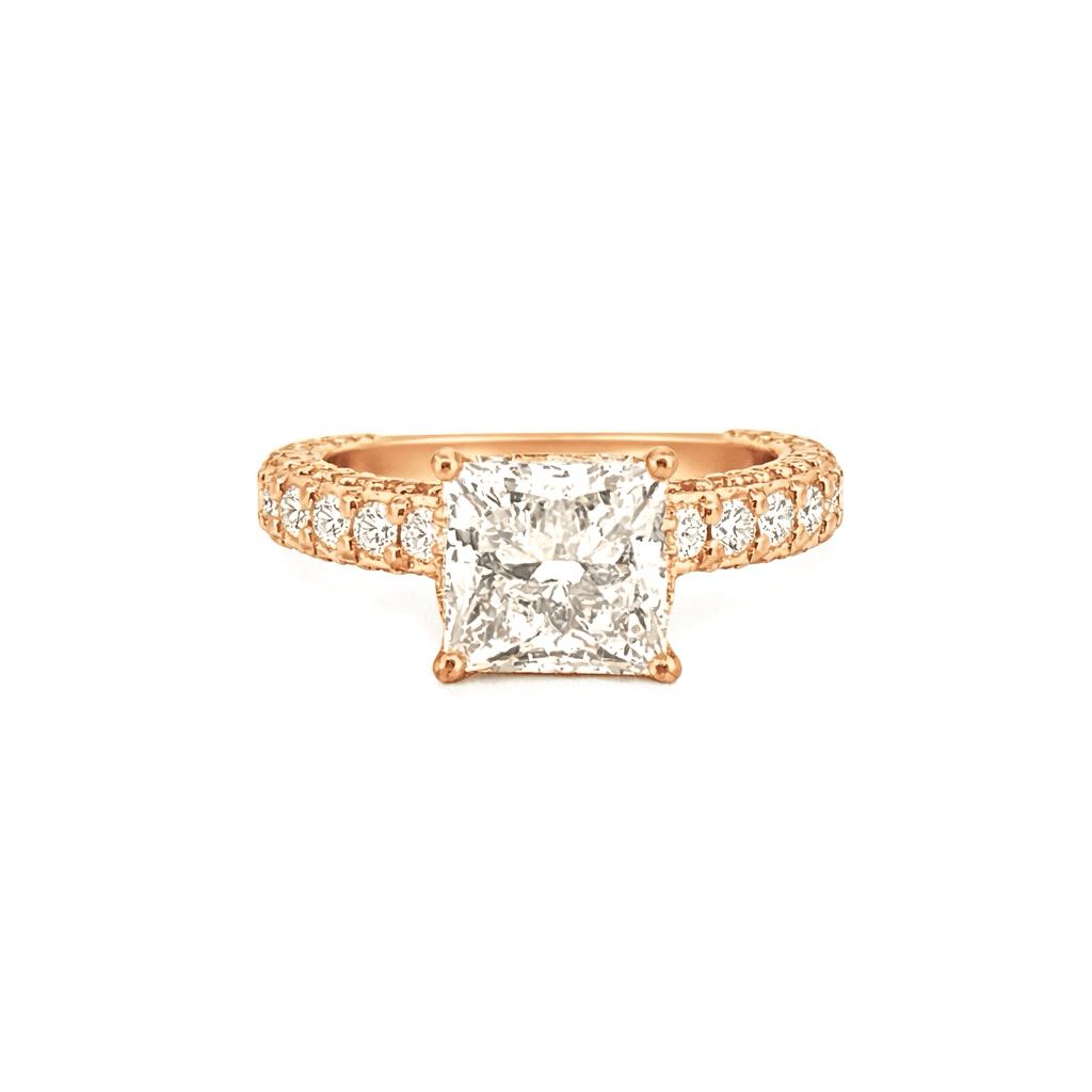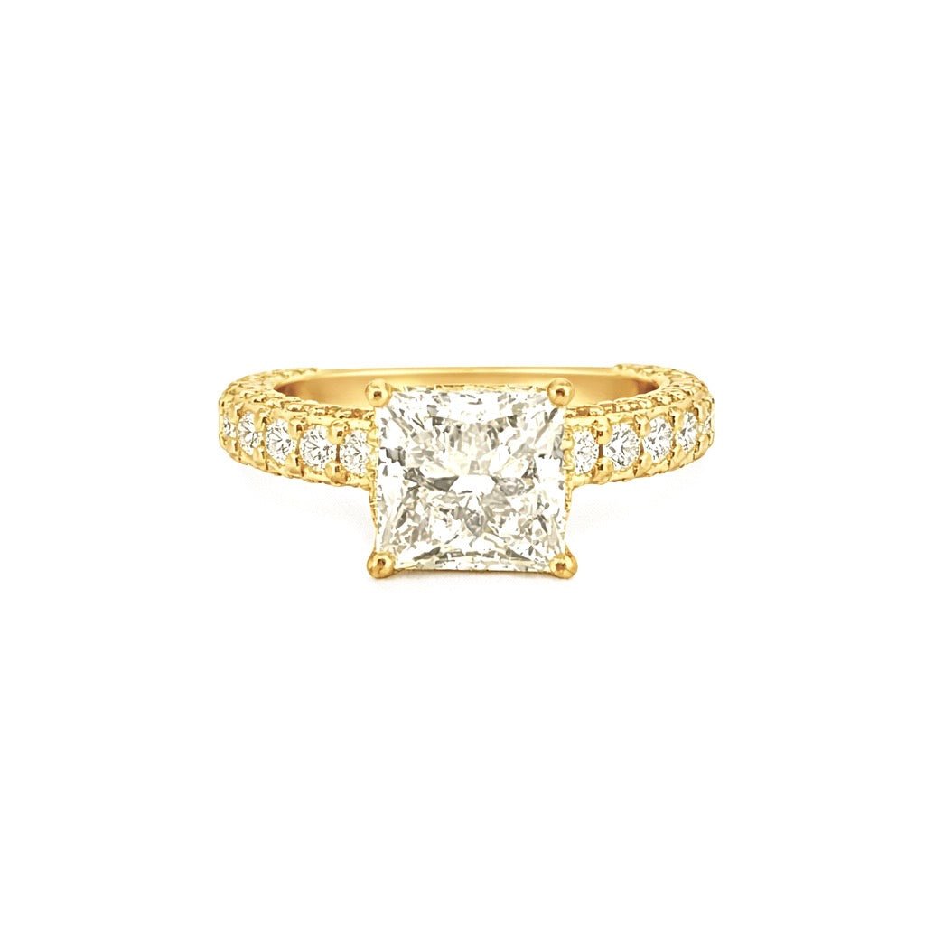 14K Gold 3.00 Carat Lab Grown Princess Diamond Under Halo 3D Engagement Ring