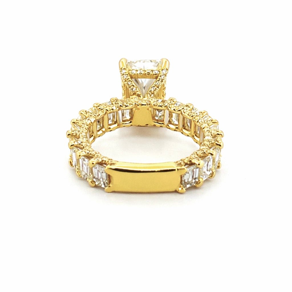 14K Gold 3.50 Carat Lab Grown Radiant Diamond Emerald Cut U Prong Engagement Ring