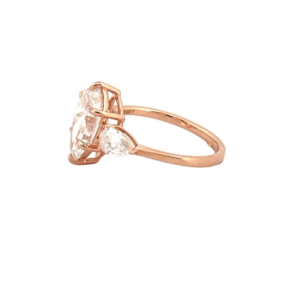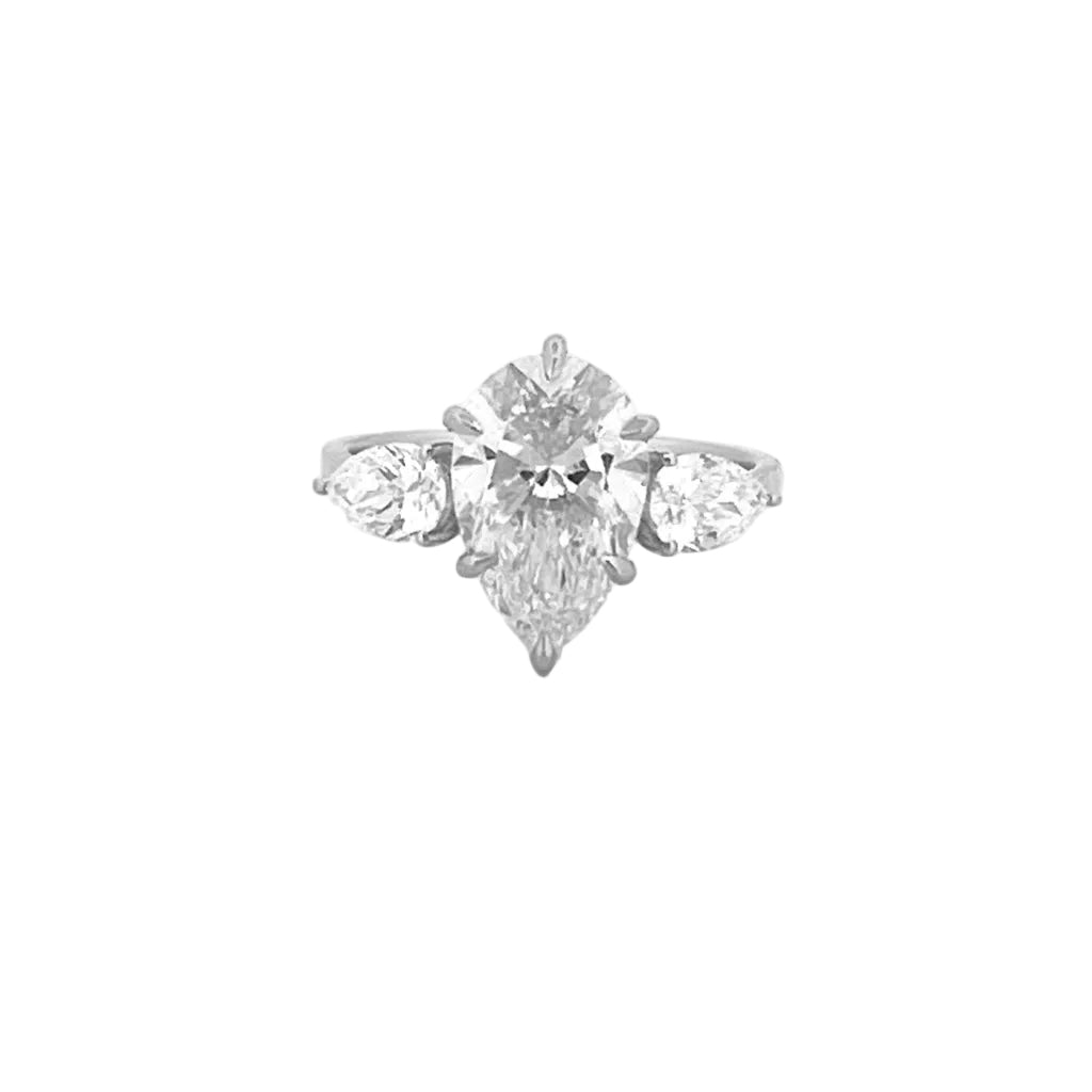 Up for sale we have a beautiful 14K Gold 3.80 Carat Lab Grown Pear Diamond Three Stone Engagement Ring.