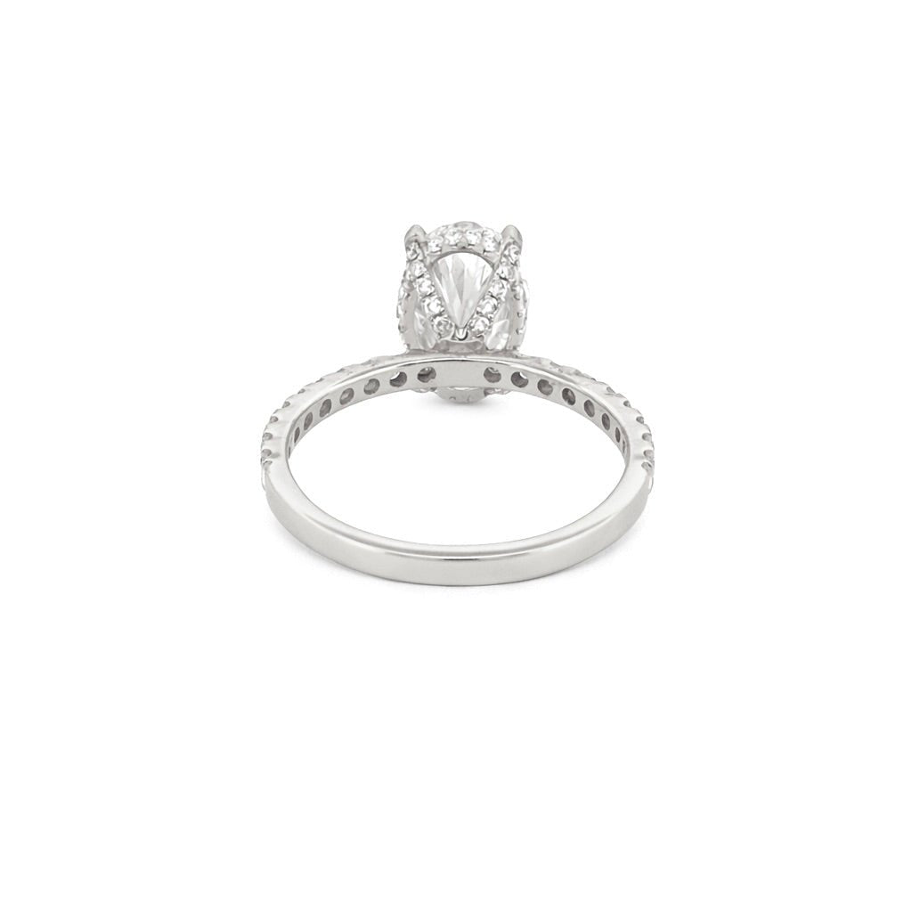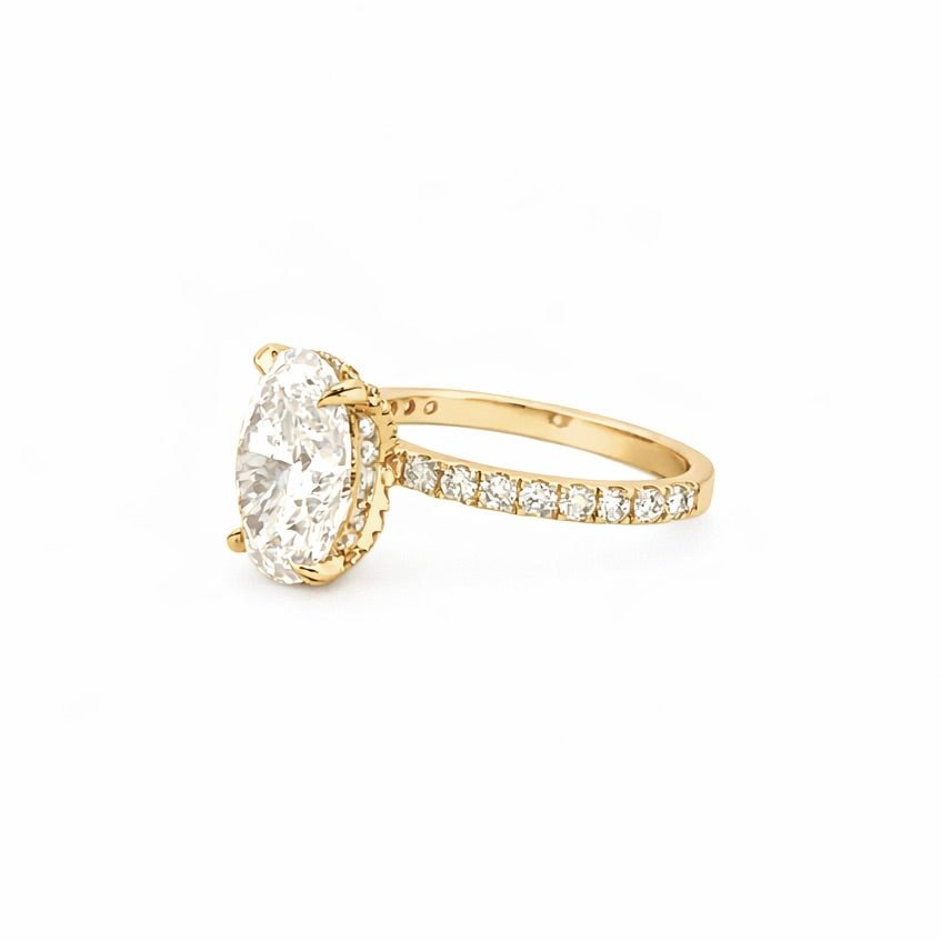 14K Gold 4.00 Carat Lab Grown Oval Diamond Prong Under Halo Engagement Ring