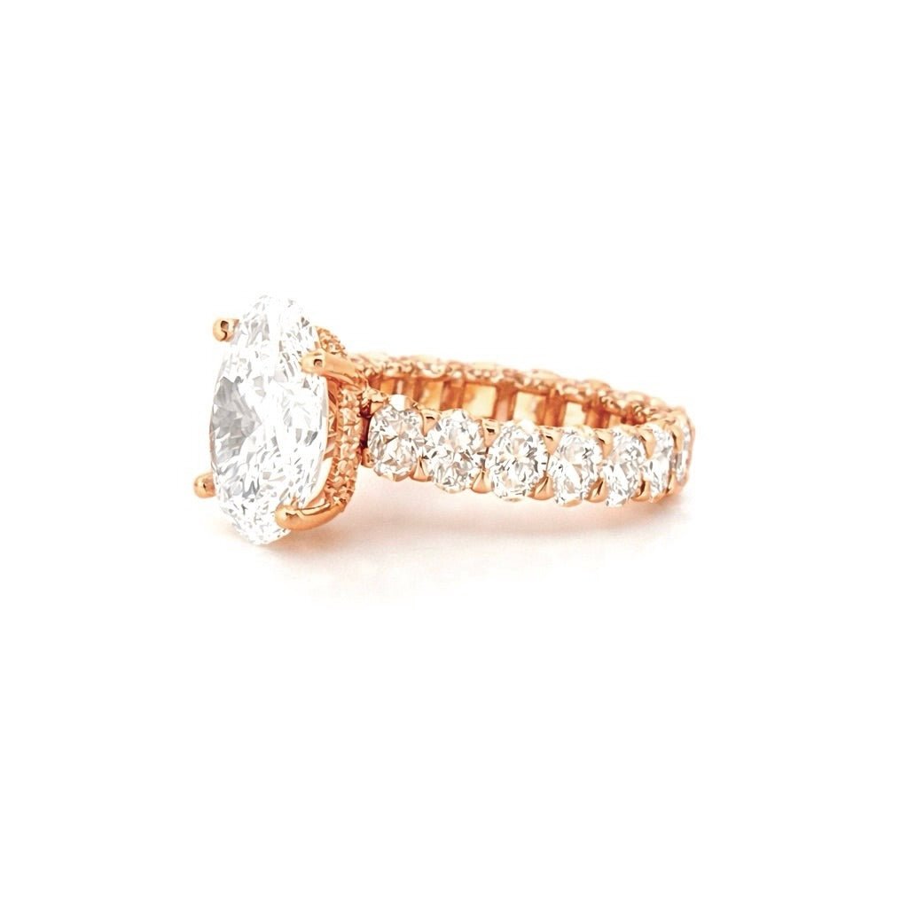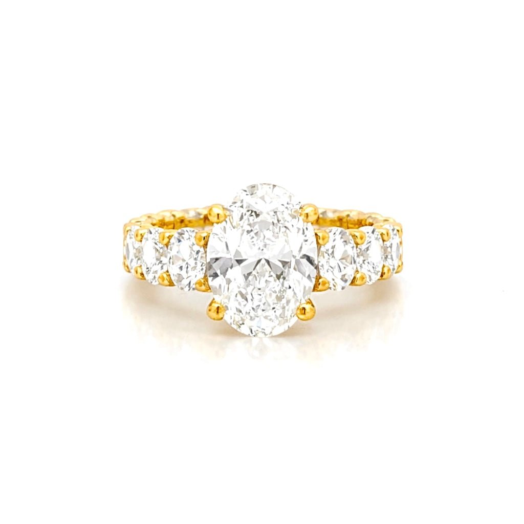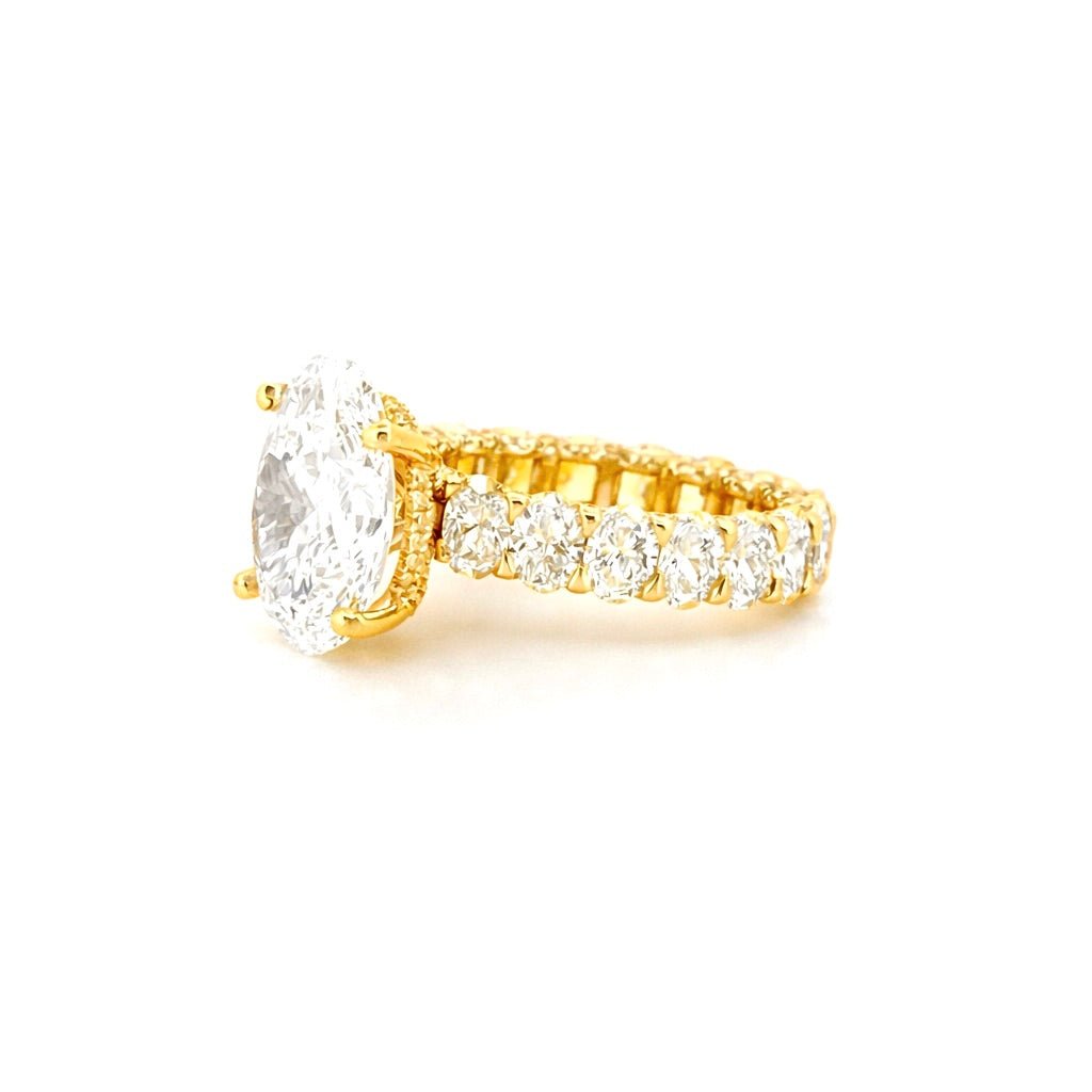 14K Gold 5.00 Carat Lab Grown Oval U Prong Oval Set Diamond Walls Engagement Ring with Diamond Under Halo