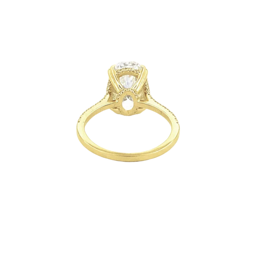 Up for sale we have a beautiful 14K Gold 5.00 Carat Oval Lab Grown Diamond Open Gallery Cathedral Engagement Ring.