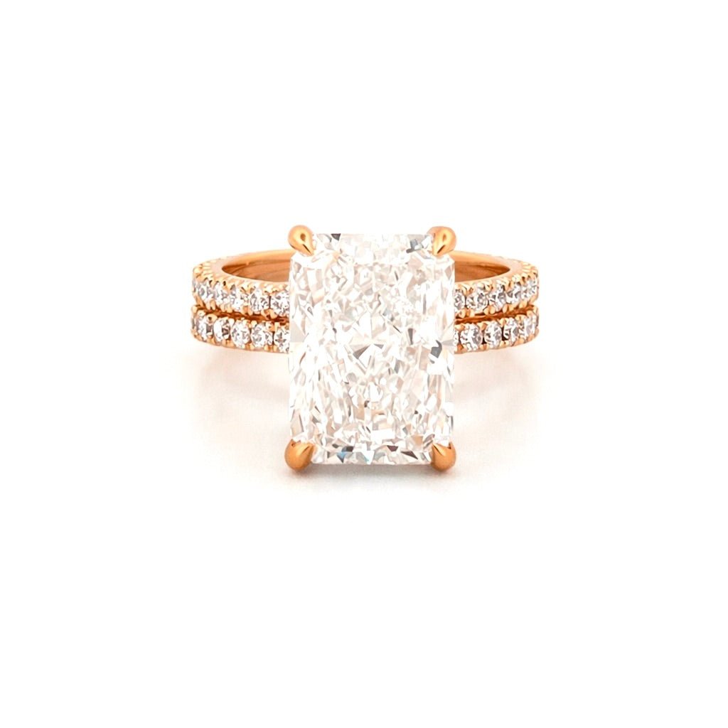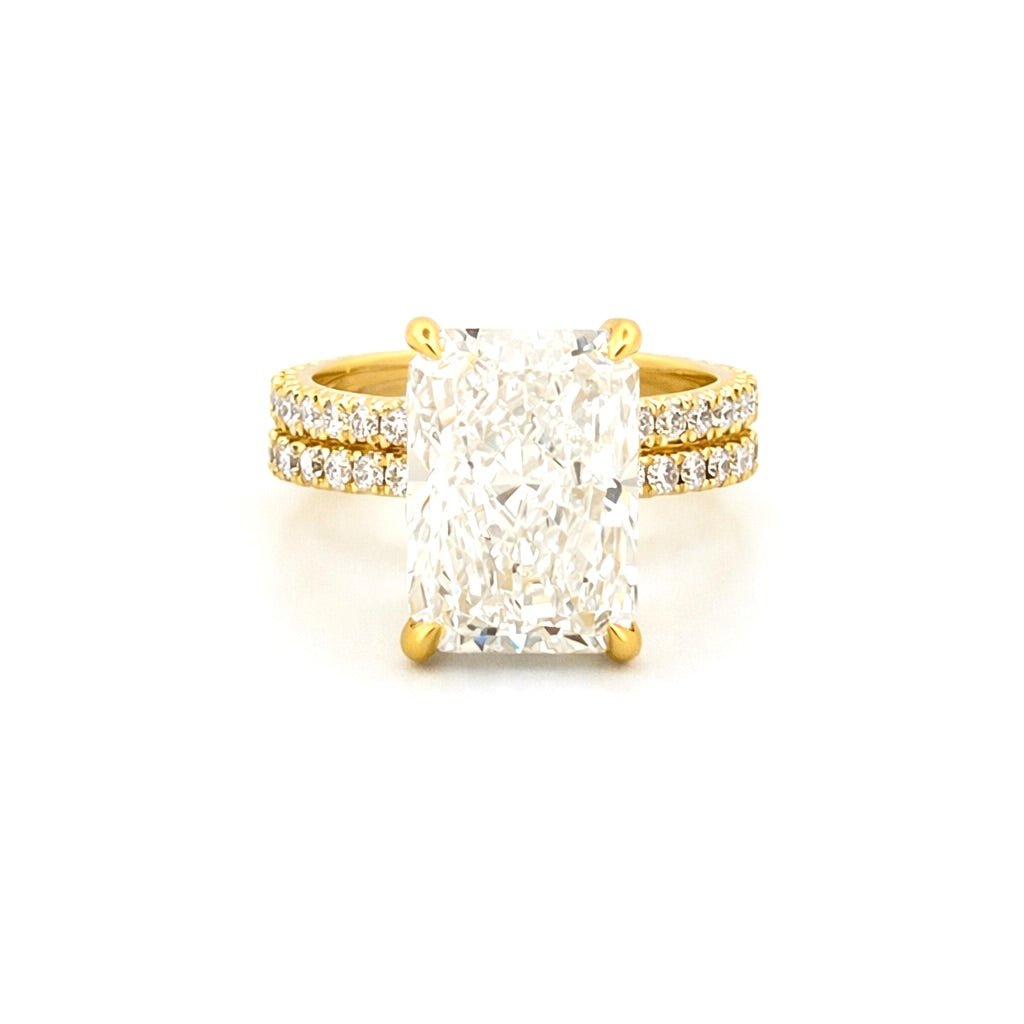 14K Gold 7.00 Carat Lab Grown Radiant Diamond Prong Set Under Halo Engagement Set