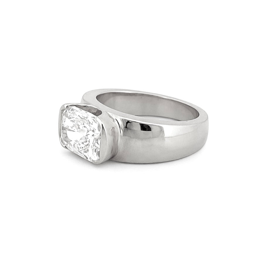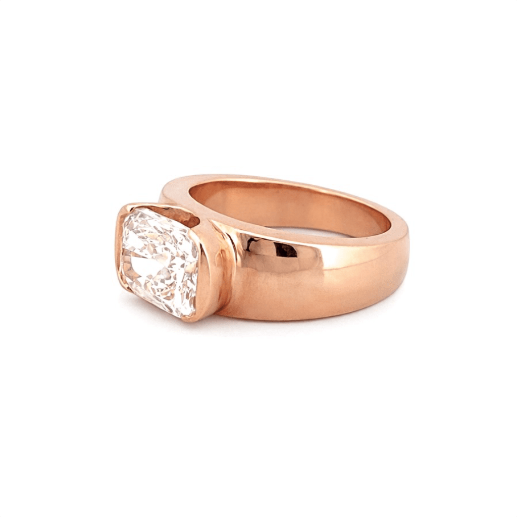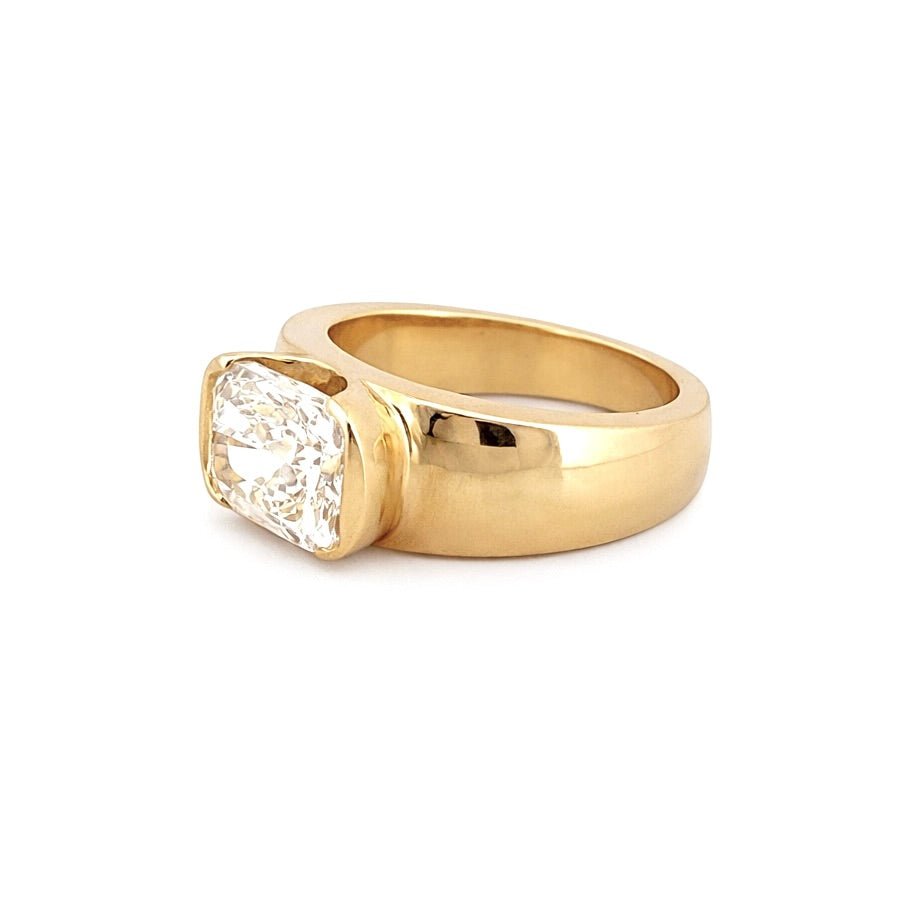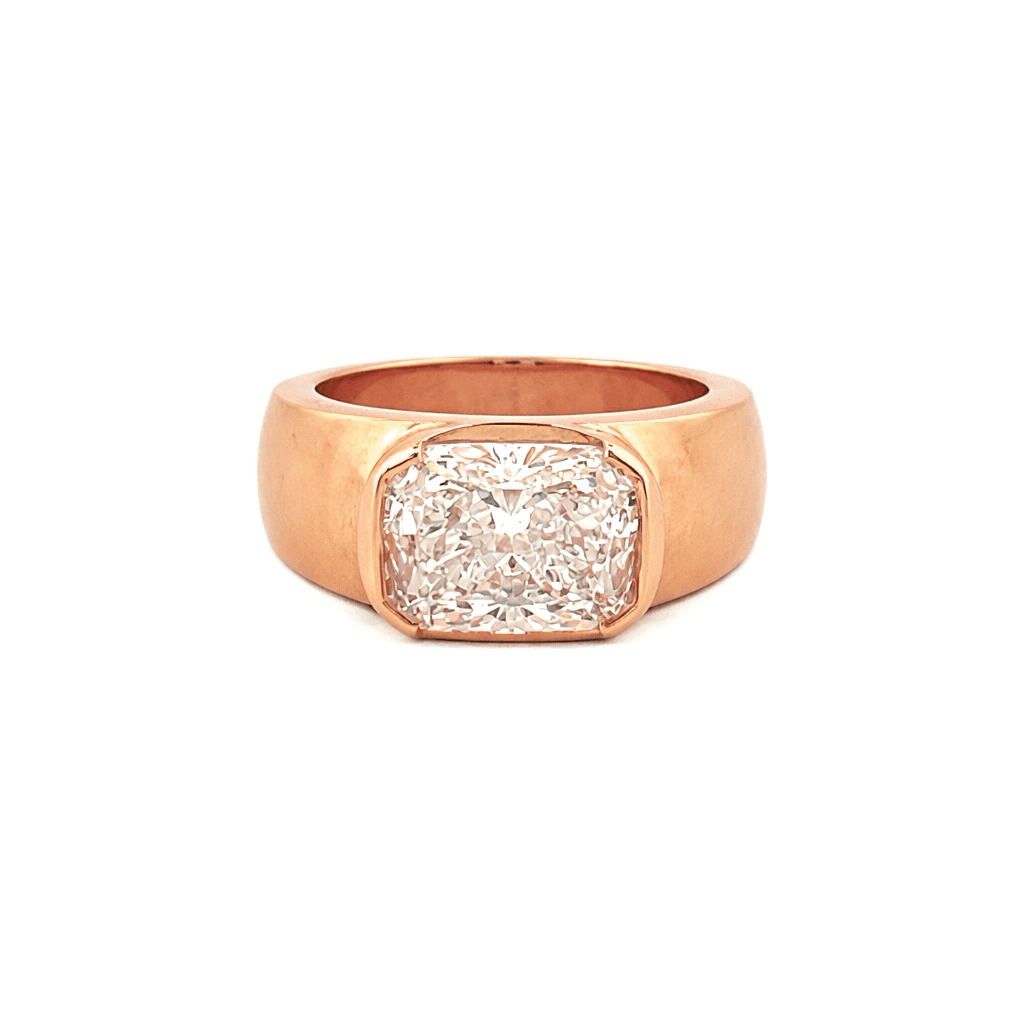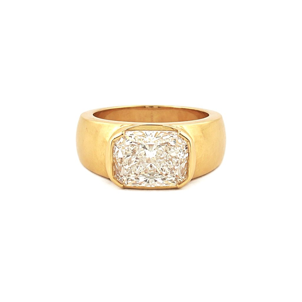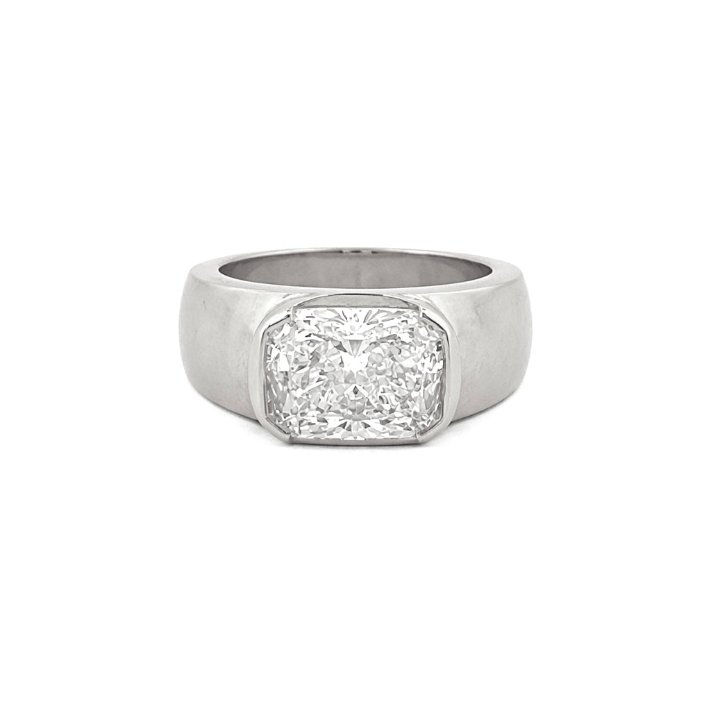 14K Gold East West 3.00 Carat Lab Grown Elongated Cushion Diamond Bezel Engagement Band