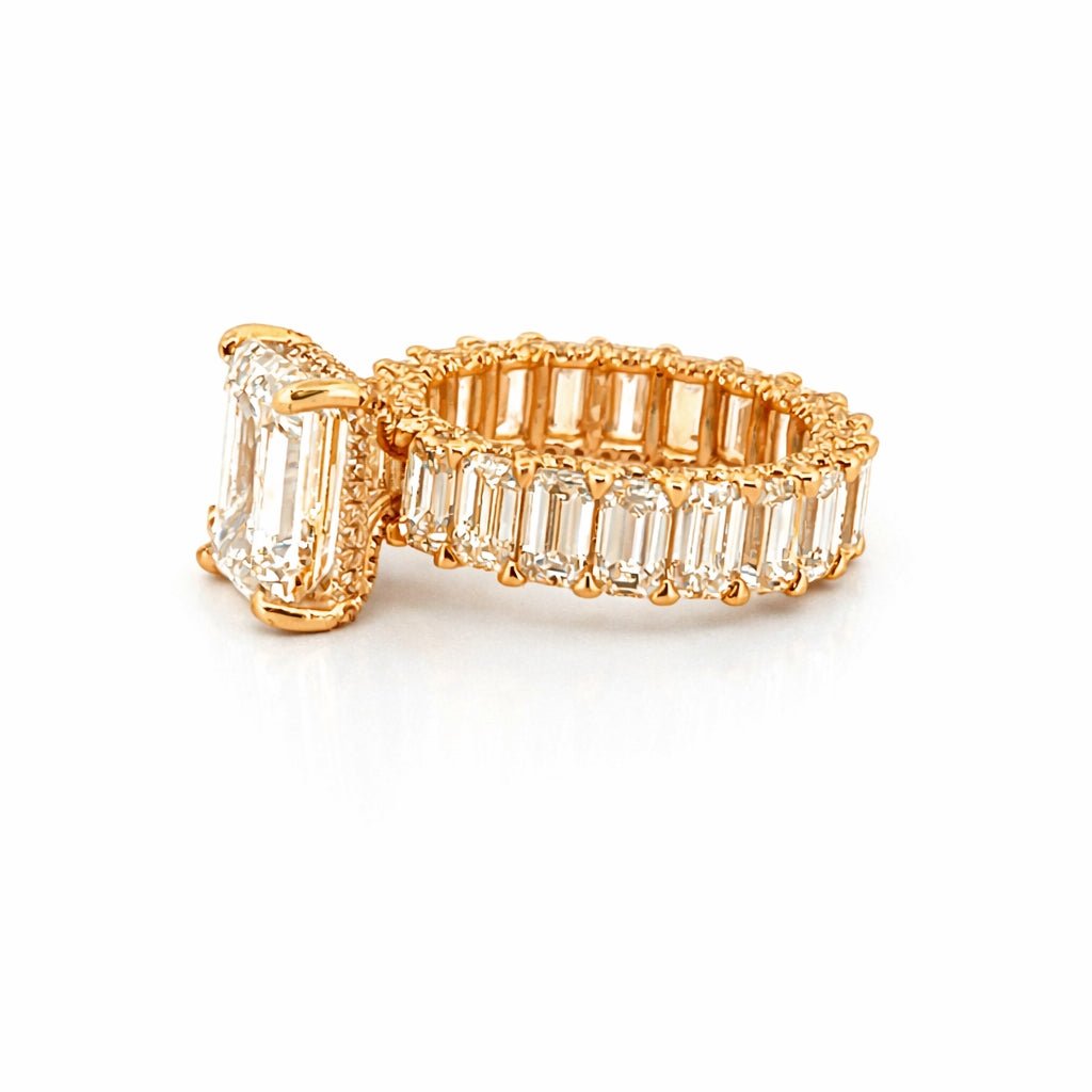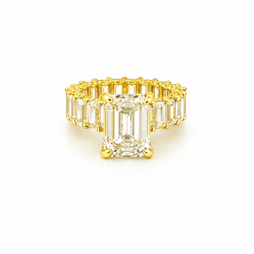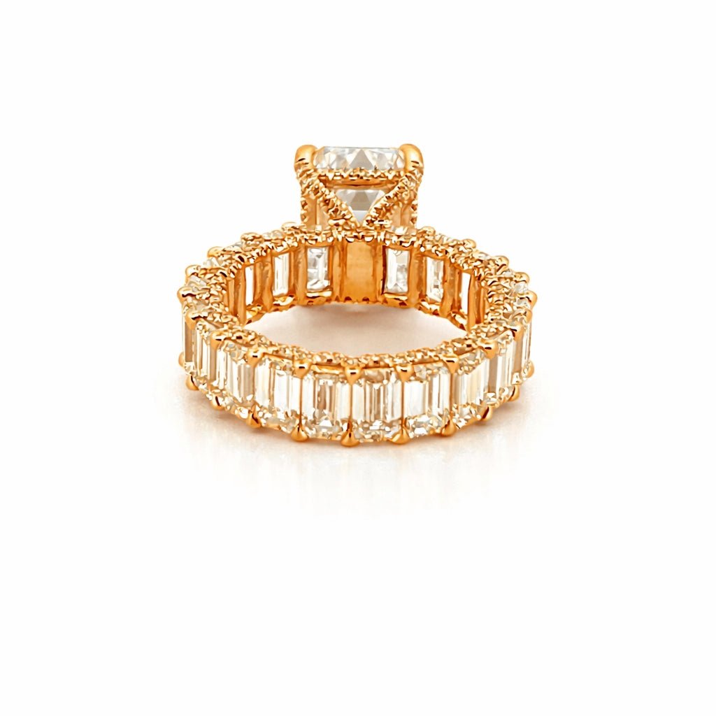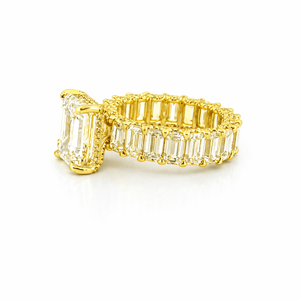 14K Gold 5.00 Carat Lab Grown Emerald Eternity Diamond Walls Under Halo Engagement Ring