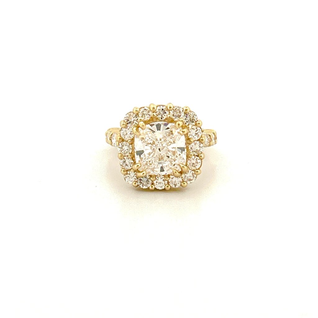 14K Gold Lab Grown Oval Cushion Natural Halo Setting Engagement Ring