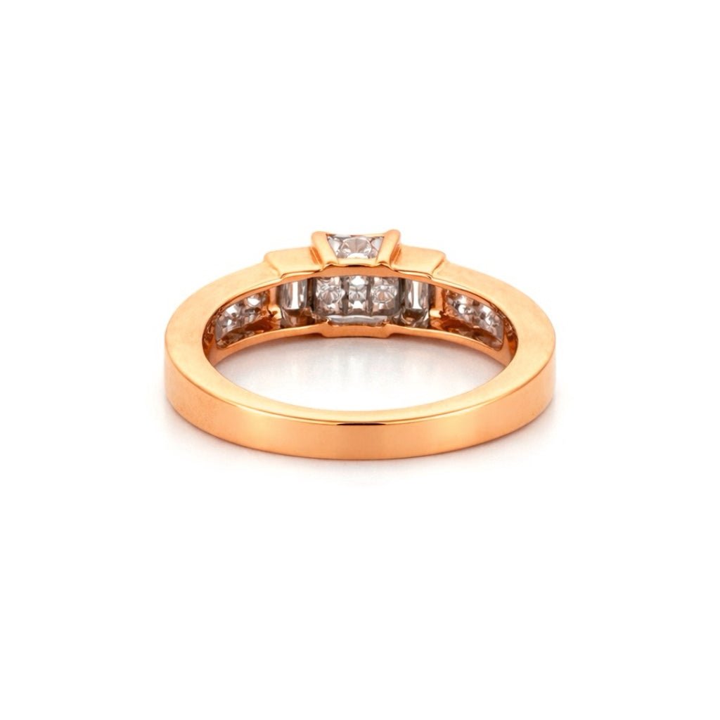 14K Gold Princess Pave Center Diamond Invisible Set Basket Engagement Ring