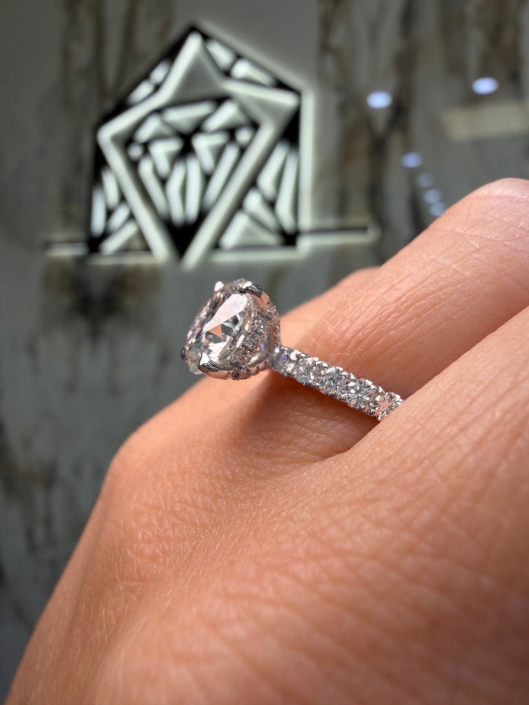 14K Gold 2.50 Lab Grown Round Diamond Eternity Under Halo Engagement Ring