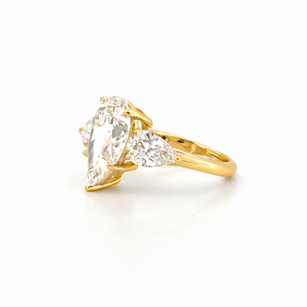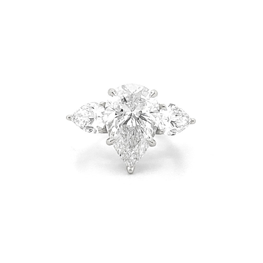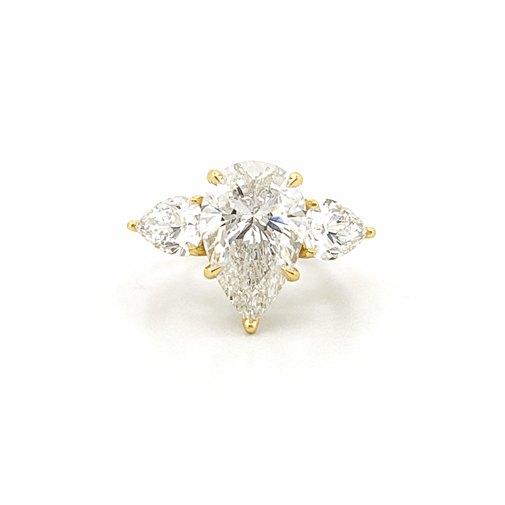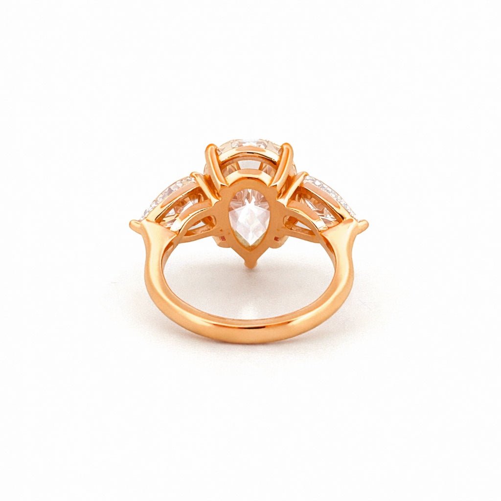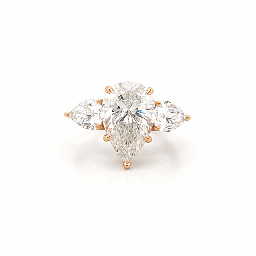 14K Gold 5.00 Carat Lab Grown Trio Pear Engagement Ring