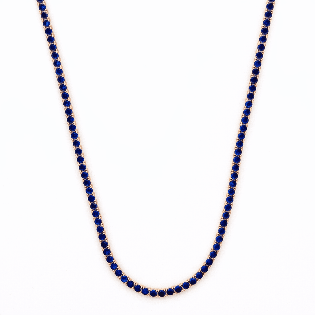 14K Gold Lab Grown 16.00 Carat Sapphire Tennis Necklace