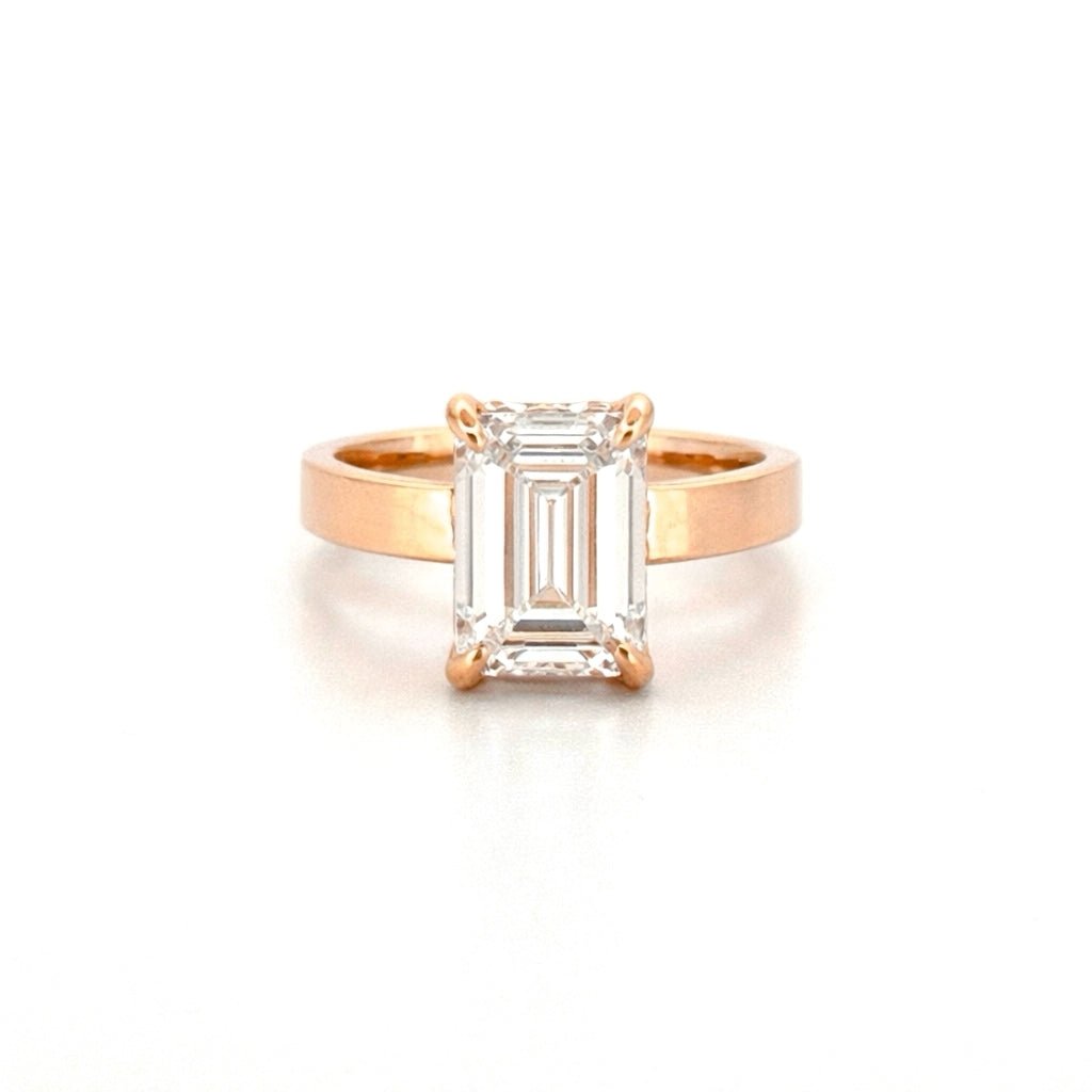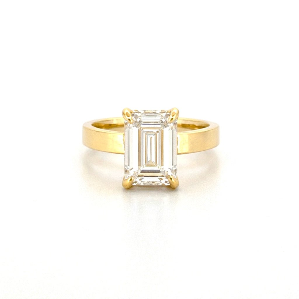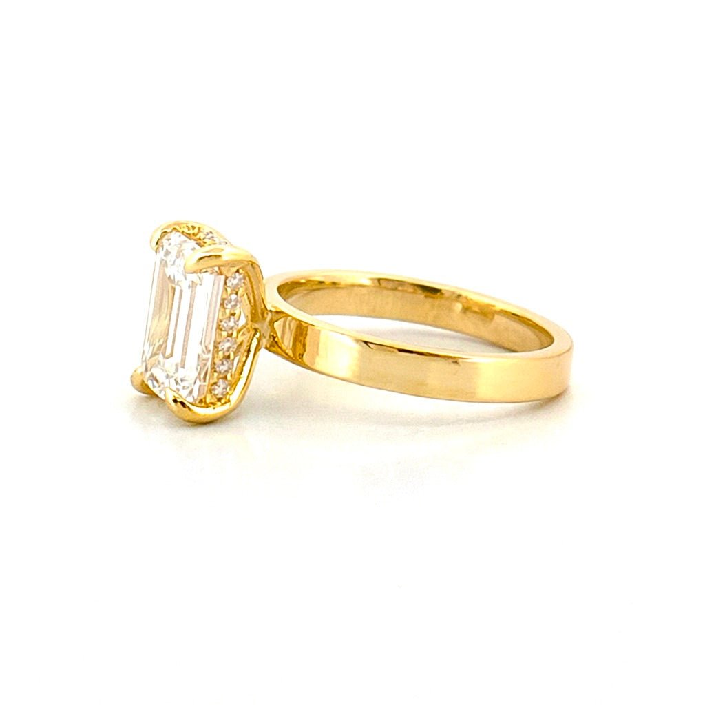 Up for sale we have a beautiful 14K Gold Lab Grown Emerald Diamond Solitaire Under Halo Engagement Ring.