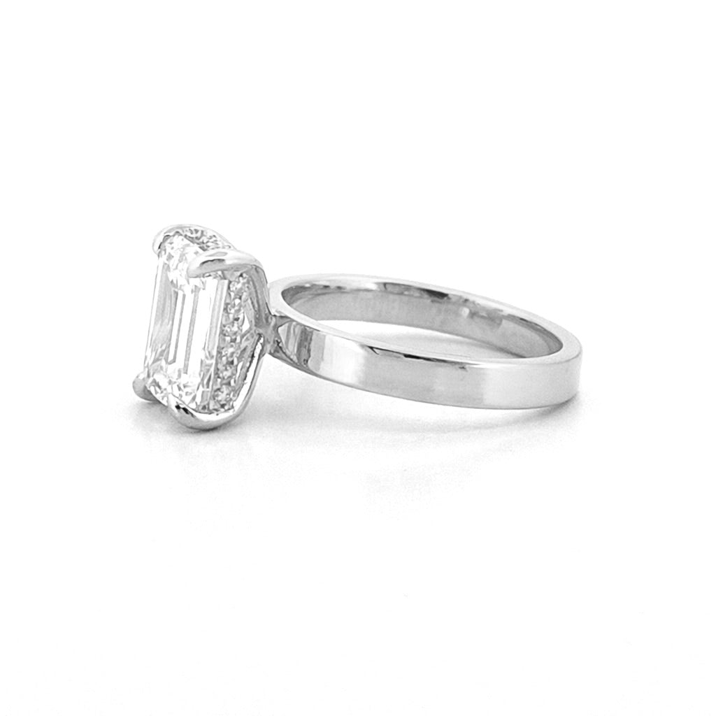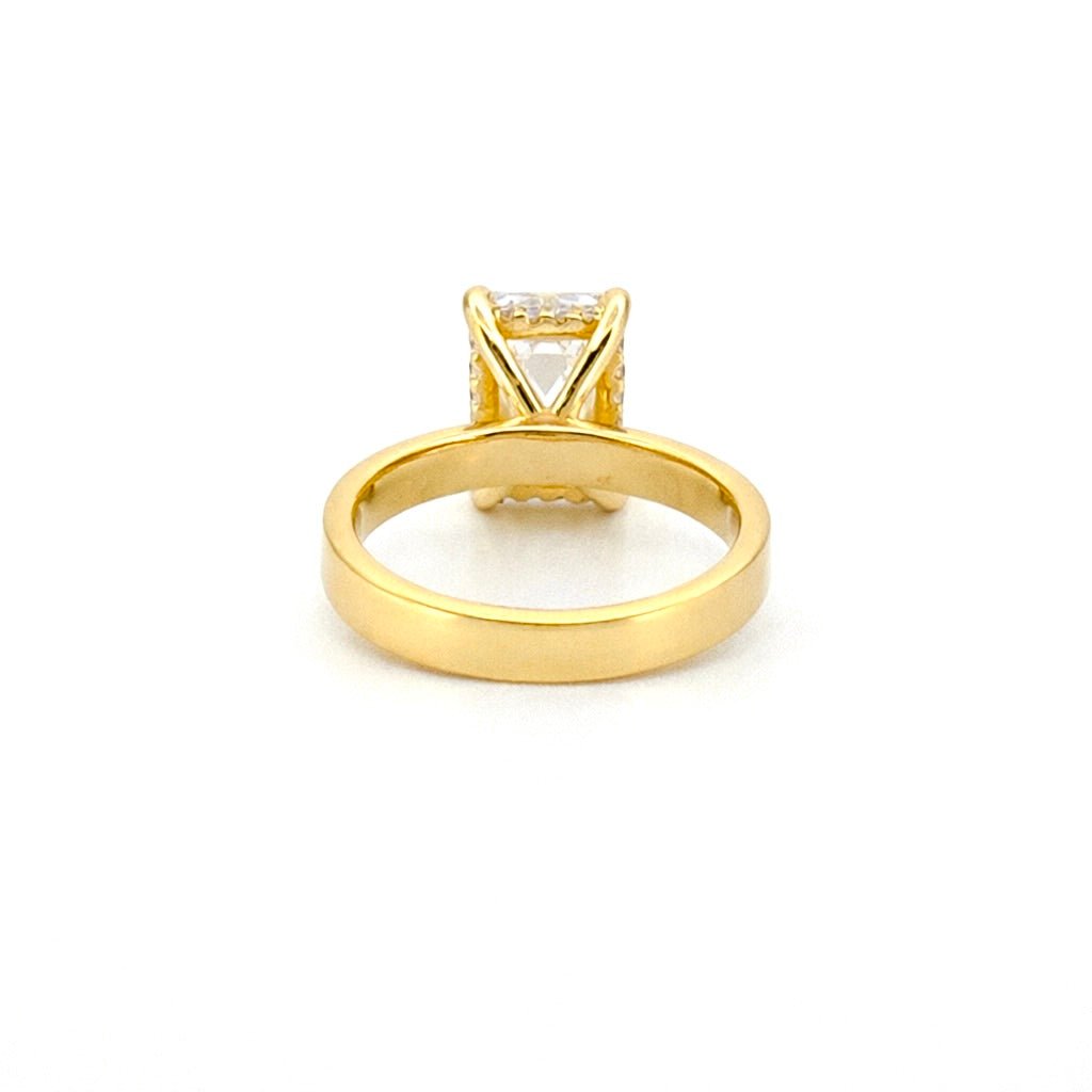 14K Gold Lab Grown Emerald Diamond Solitaire Under Halo Engagement Ring