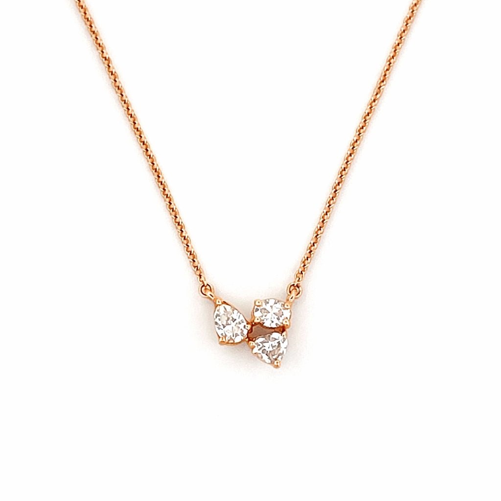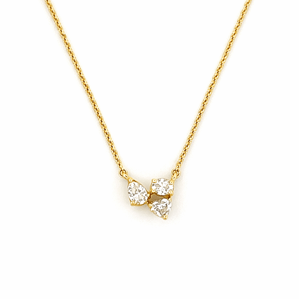 14K Gold Heart Pear Oval Diamond Trio Pendant Necklace