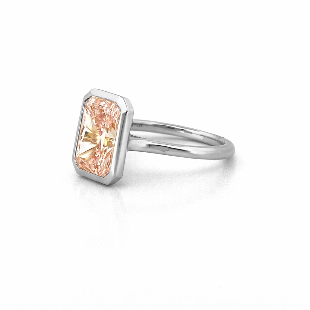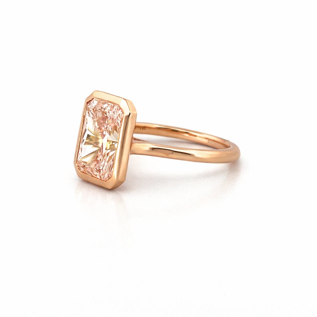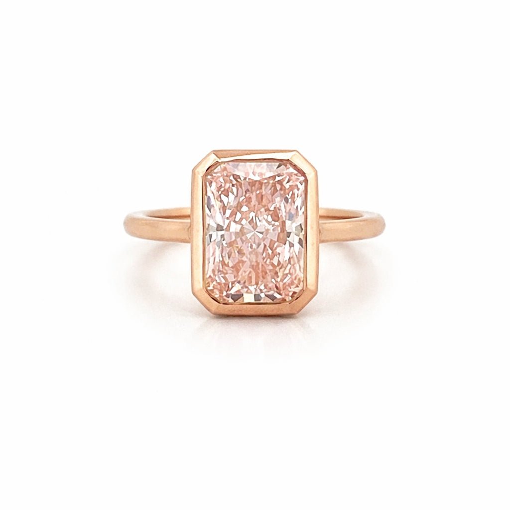14K Gold Lab Grown Radiant Pink Diamond Solitaire Bezel Engagement Ring