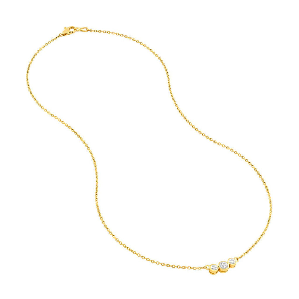 Up for sale we have a beautiful 14K Gold Three Stone Bezel Pendant Necklace.